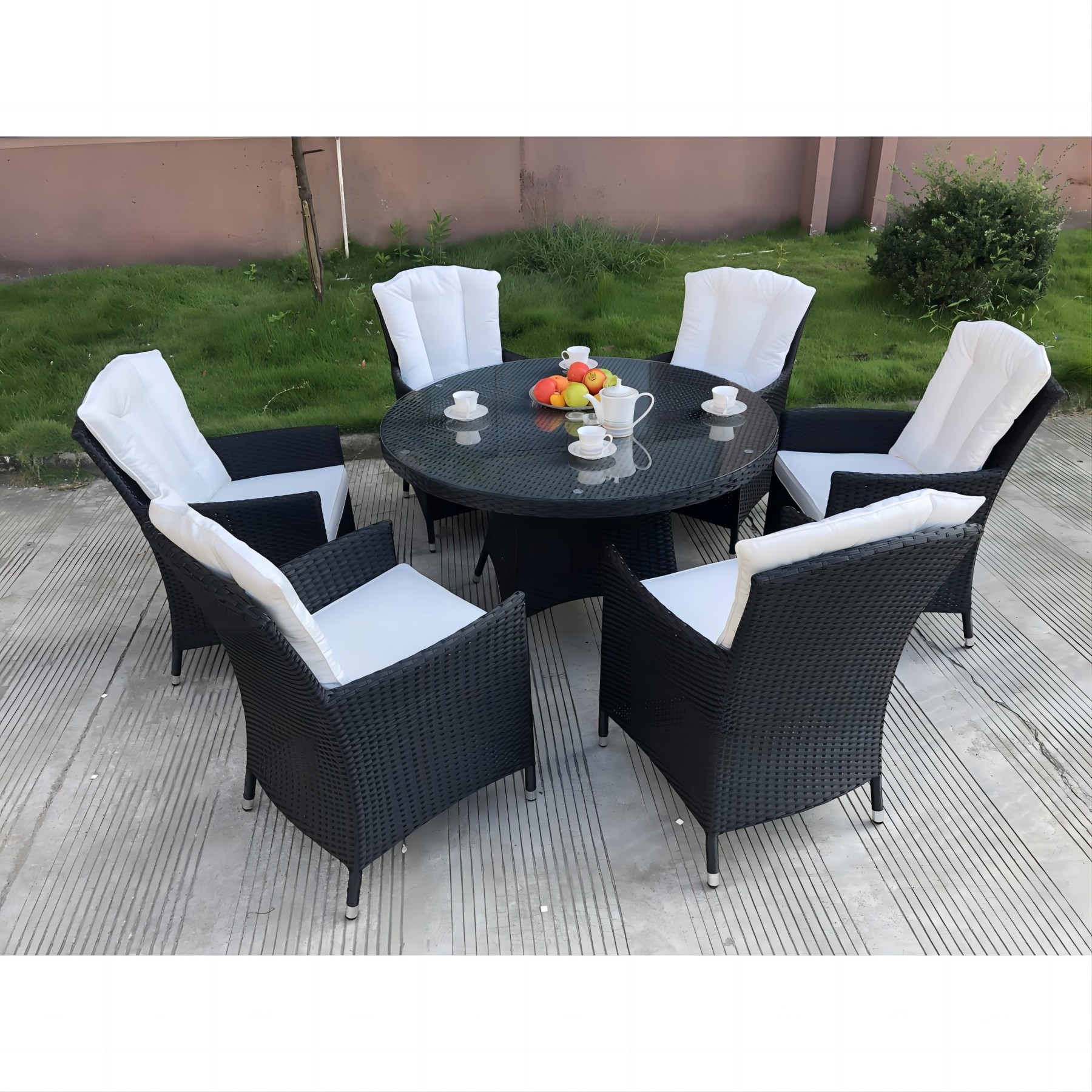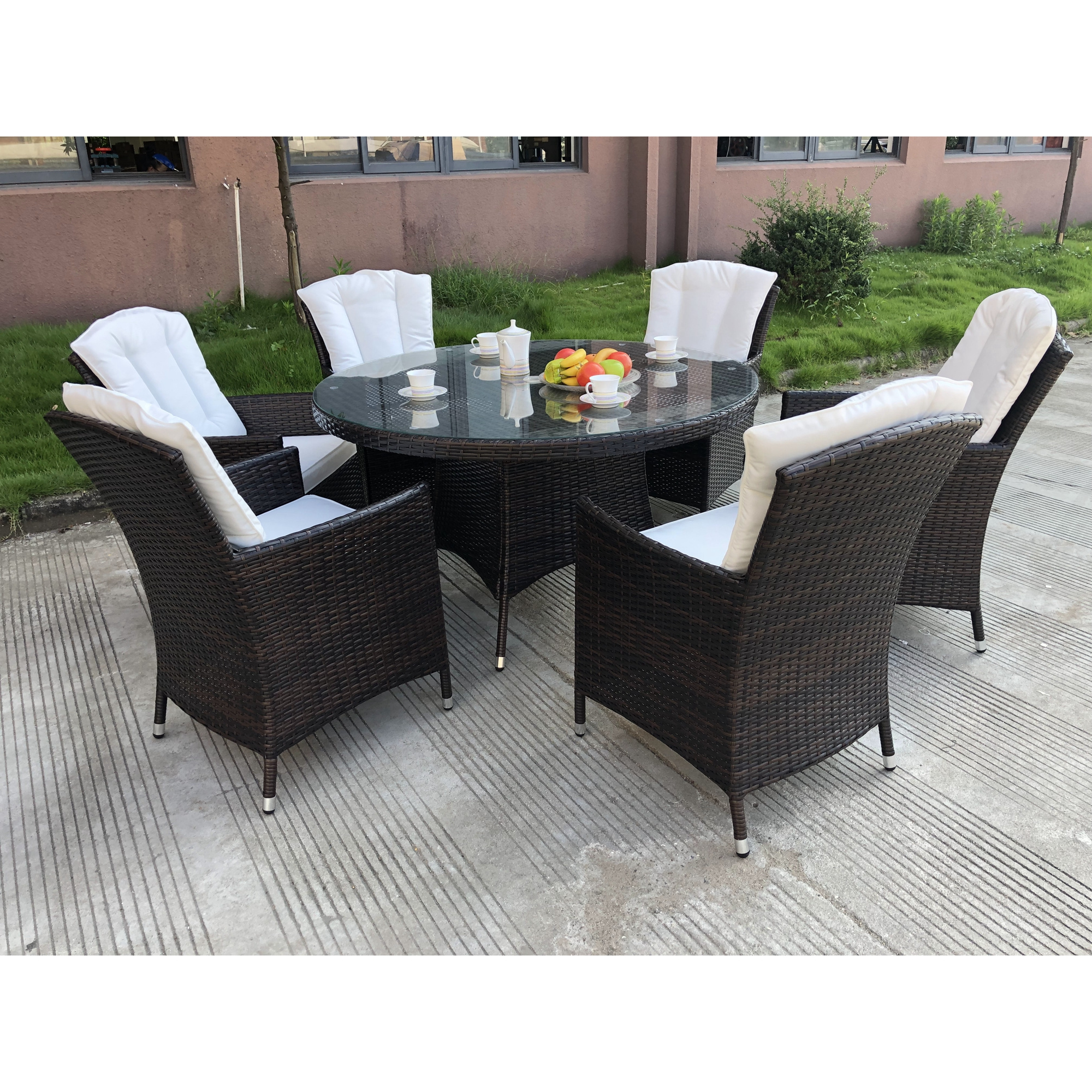 Cheapest Rattan Furniture Outdoor Waterproof 6 person Dining set with round table brown rattan chair