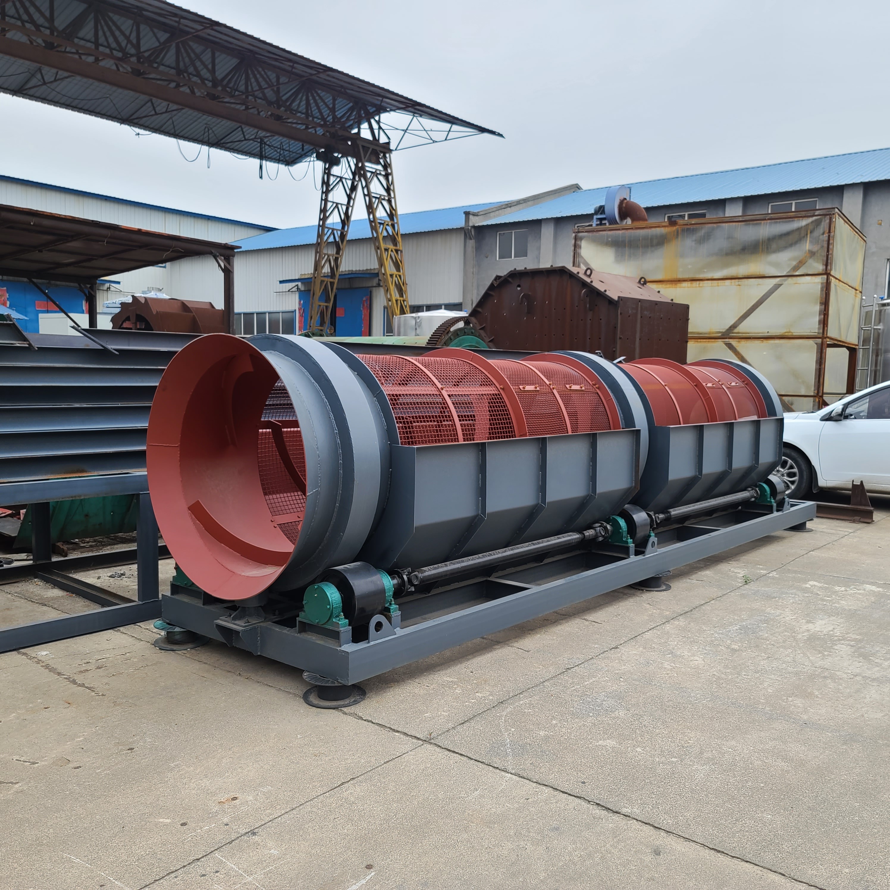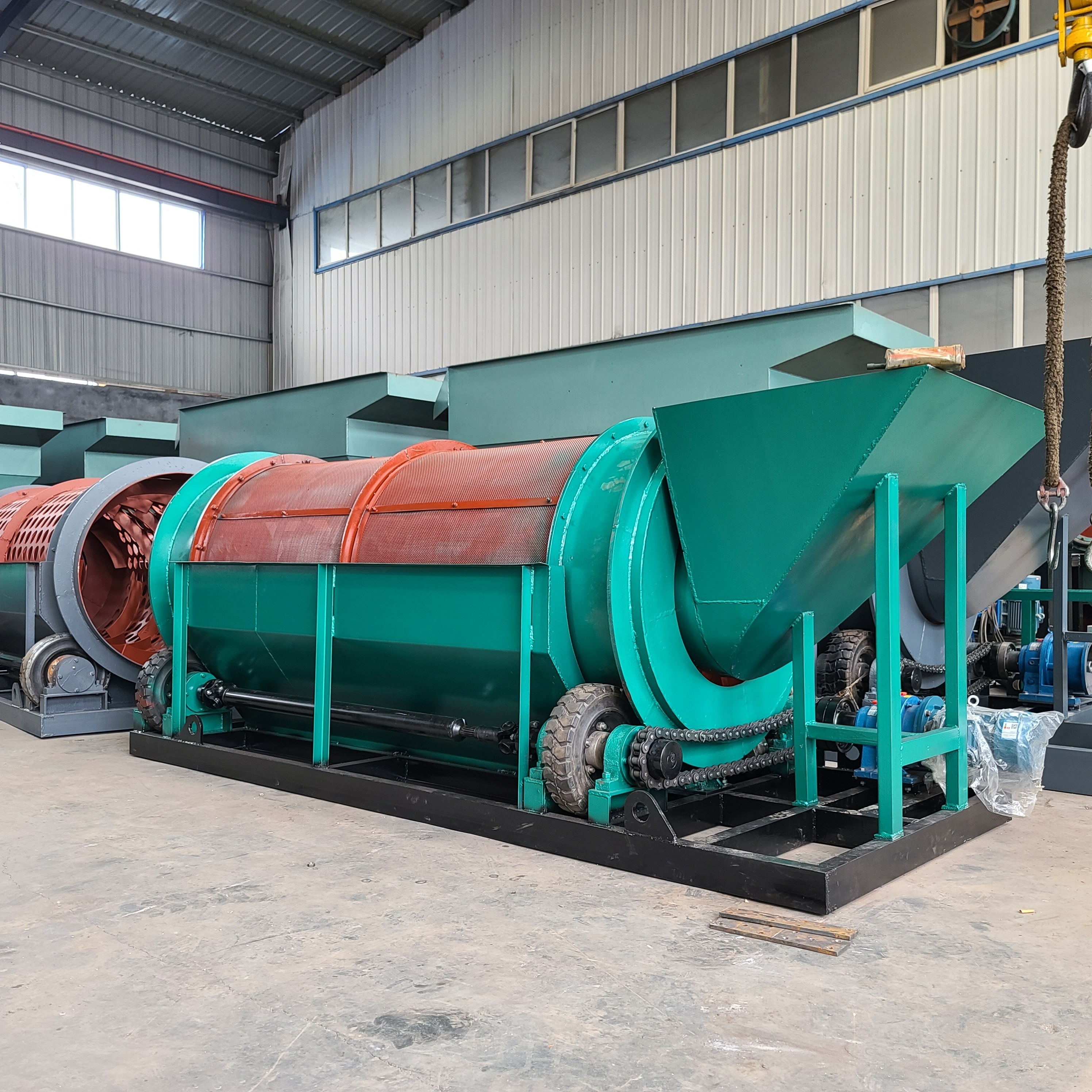 The trommel screen is a screening equipment for environmental protection engineering technology, household waste, aged waste treatment, decoration waste, comprehensive waste treatment, and other industries. It has the advantages of simple structure, convenient operation, high screening efficiency, and is suitable for screening materials of various properties. According to the specific requirements of the screened materials, the screened materials are 30mm and 80mm respectively.