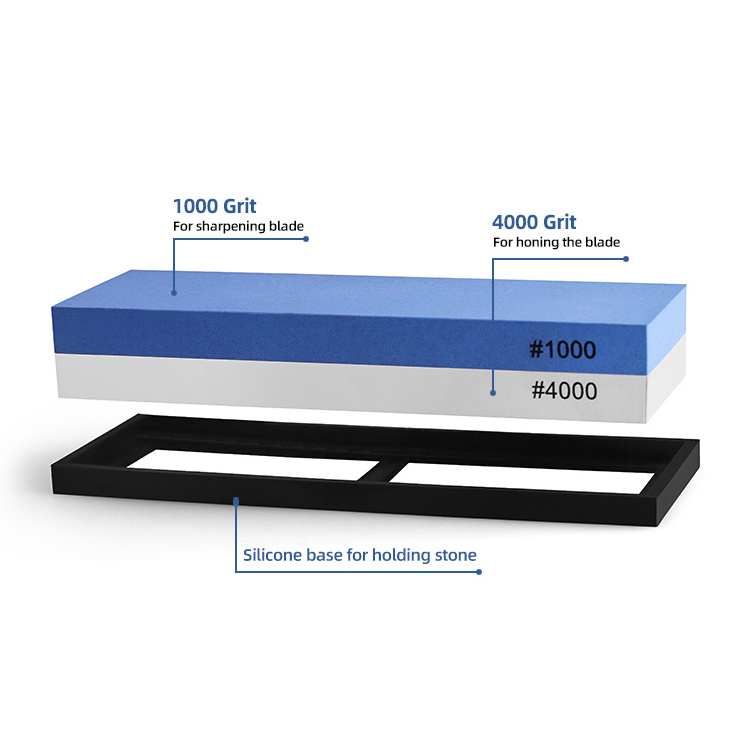 | Pack Include | 2 piece whetstone, 1 piece silicone base | Packing | |
