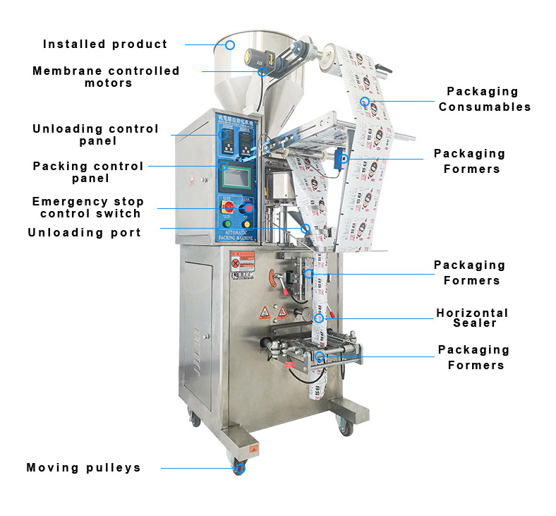 Features 1. suitable for packing powder granules, sealing automatic bagging and packaging