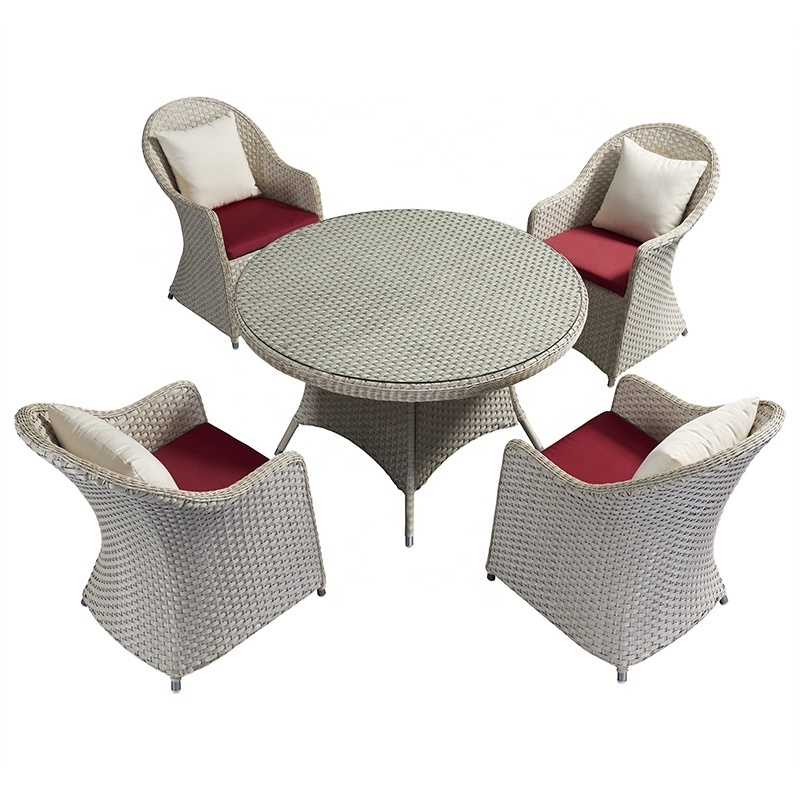 Stackable Outdoor Patio Restaurant Glass Top Dining Round Table Chair Set Garden Rattan Aluminum Dining Chair with Cushion