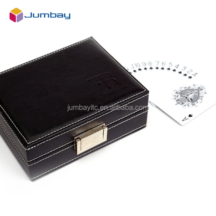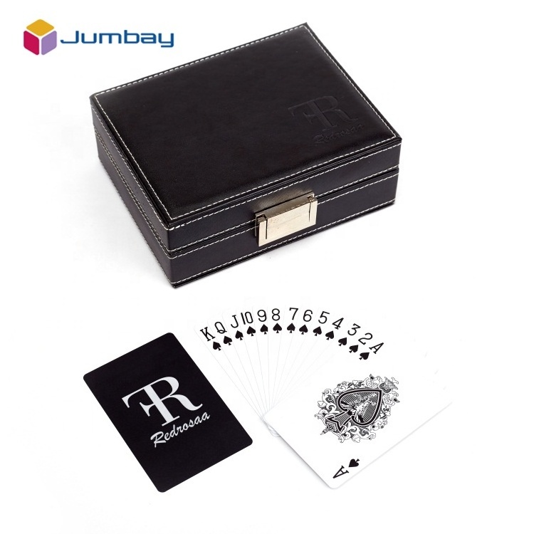 Promotional Double Deck Play Games Cards Print With Black Exquisite Packaging Of Leather Bag With Cassette Lock