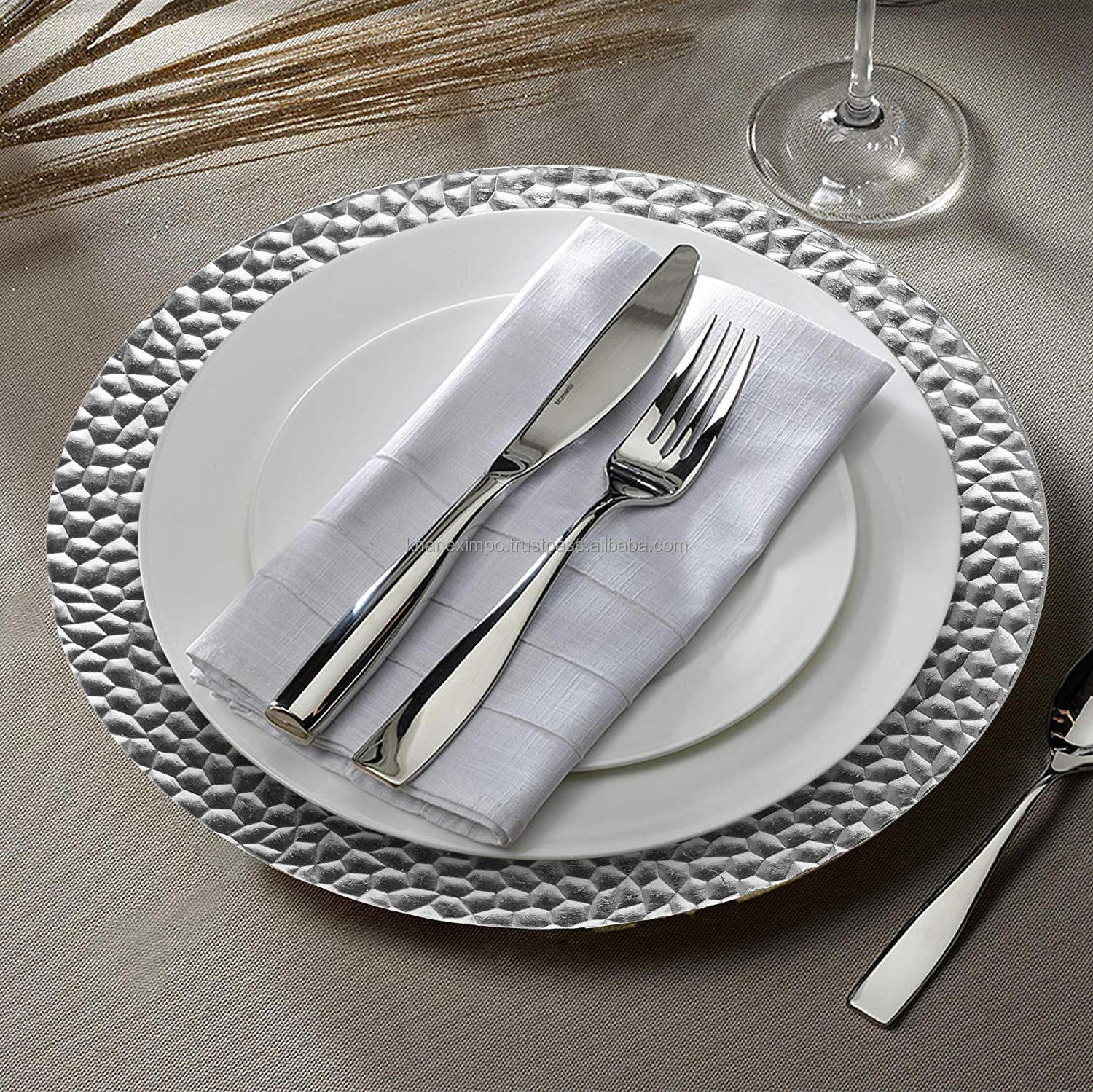 preferences and event theme. What sets our charger plates apart is their customizability. Personalize your settings by selecting from our extensive range of customization options. Whether it's adding initials, dates, or specific motifs, our plates can be tailored to reflect your unique style and make your event truly memorable.