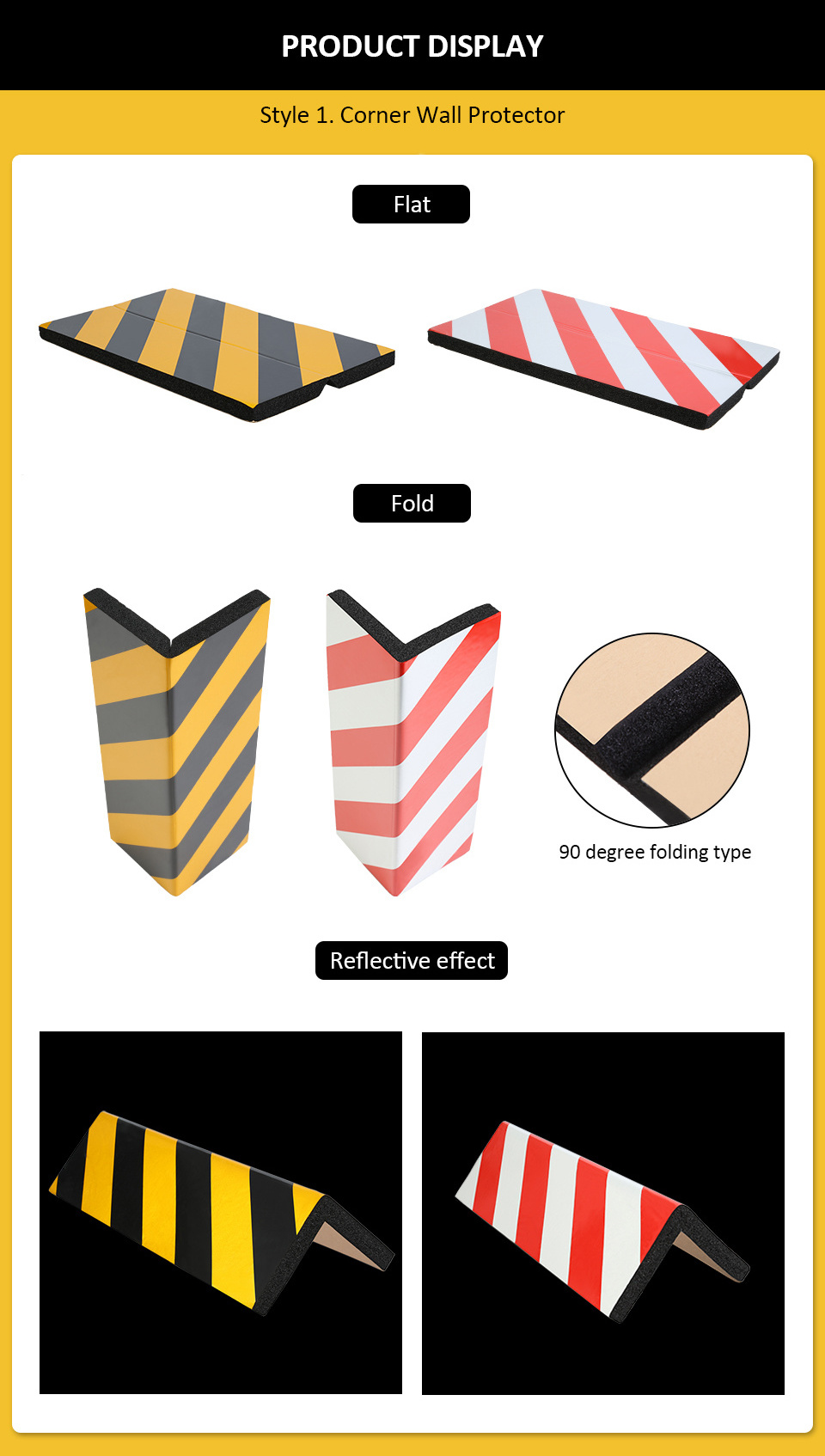 Feature:Bright Black and Yellow Stripe: The eye-catching black and yellow stripe design is highly visible. And embedded with reflective materials, can attract the attention of the driver, and improve safety in low light or at night.