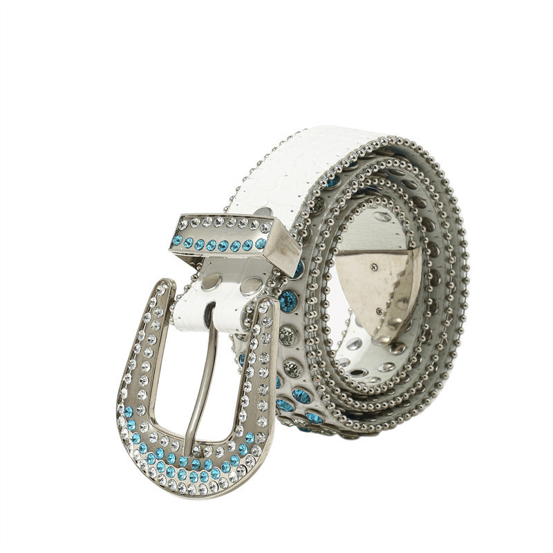 Rewin Luxury Belts Western Cowgirl Crystal Diamond Studded Leather Belt for Jean Pants Rhinestone belt for Women Men BB Simon