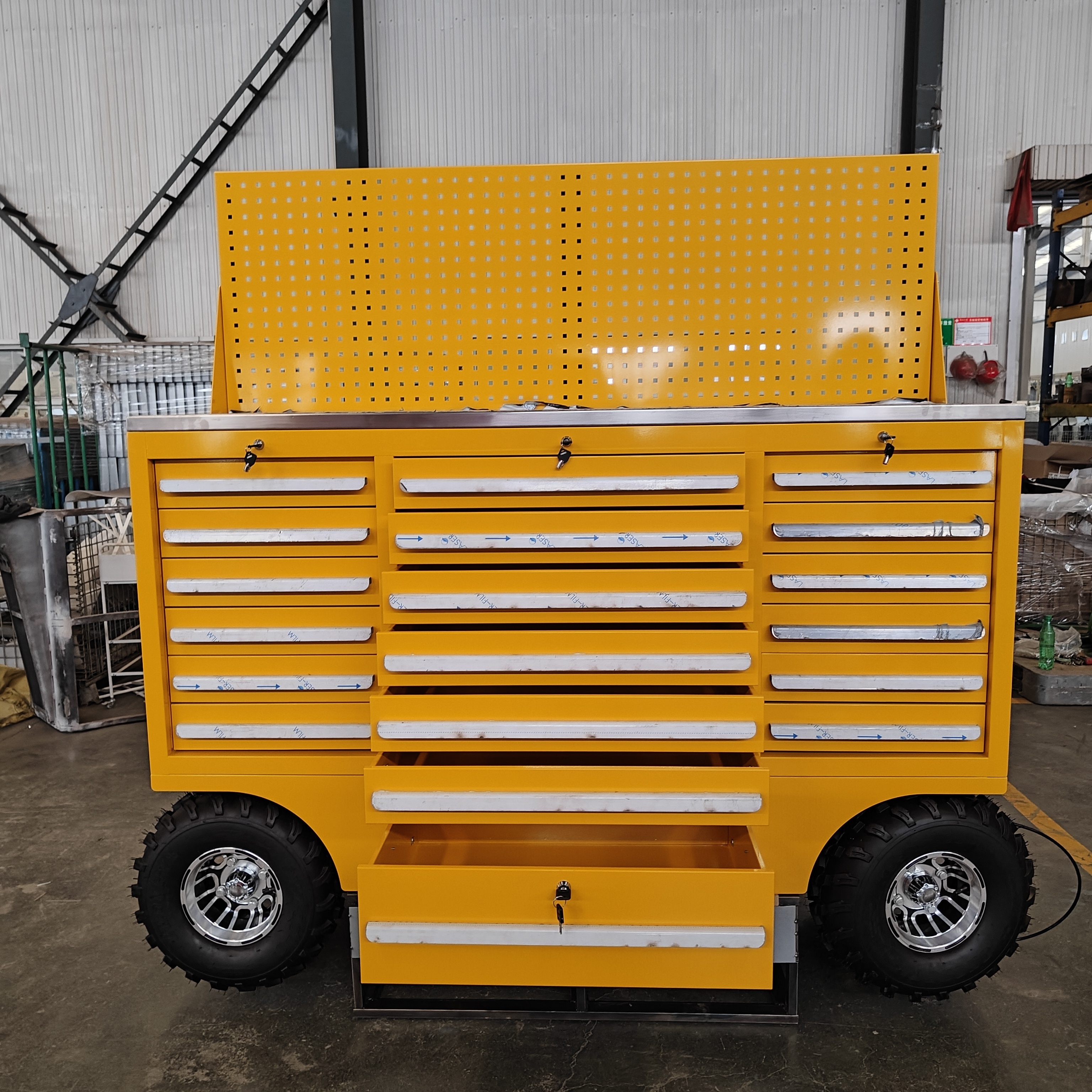 The High quality cold rolling steel material can make sure all pit cart in high quality. Every drawer can load 60-80 kg . Pit cart with wheels and locks for easy move and safe. The surface finished is powder coated is good for waterproof and anti-corrosion in any hostile environment. There are 19 drawers inside the pit cart , which can store tools and parts of various sizes, and the storage space is very sufficient. The appearance is beautiful and generous, not only powerful in use, but also can increase the overall aesthetics of the workplace.