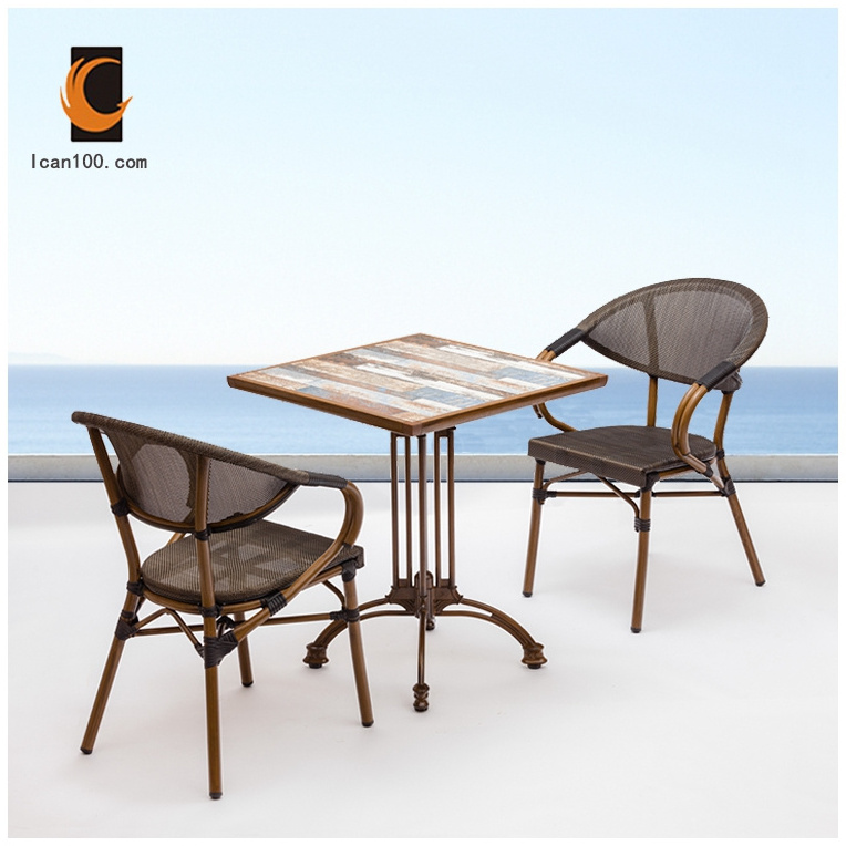 Aluminum frame rattan chair and ceramic table(2chairs+1table)