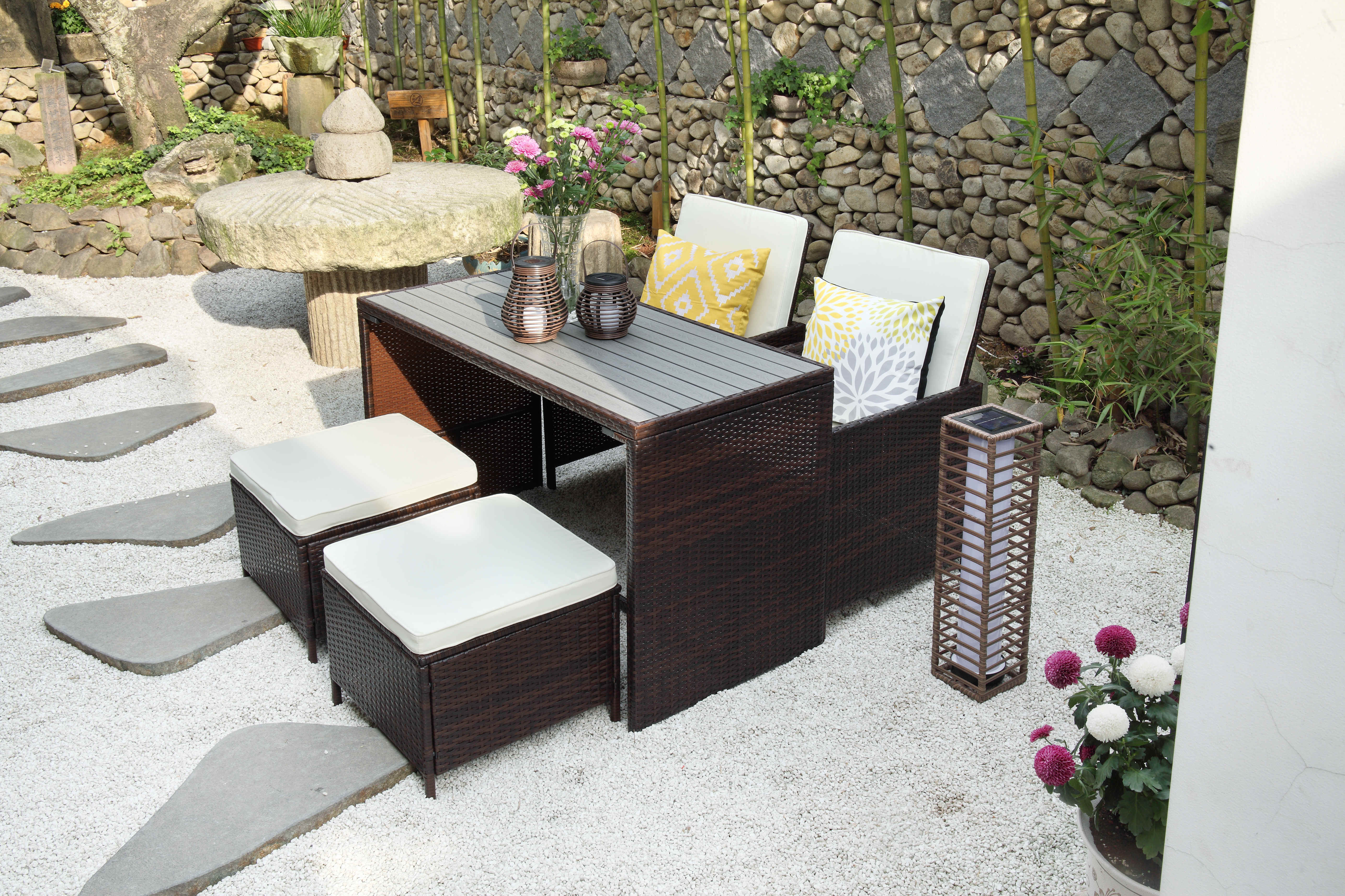 2.Rattan: SGS Tested PE rattan 3.Cushion:water-resistant 4.UV protection and weather-resistant |