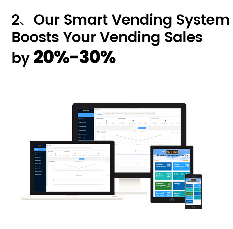 Yes, with our smart vending system, all data can be checked from mobile and you can even remotely control the machine. For example,cooling system on/off, machine on/off. Remotely put the machine out of service and other machine setting.