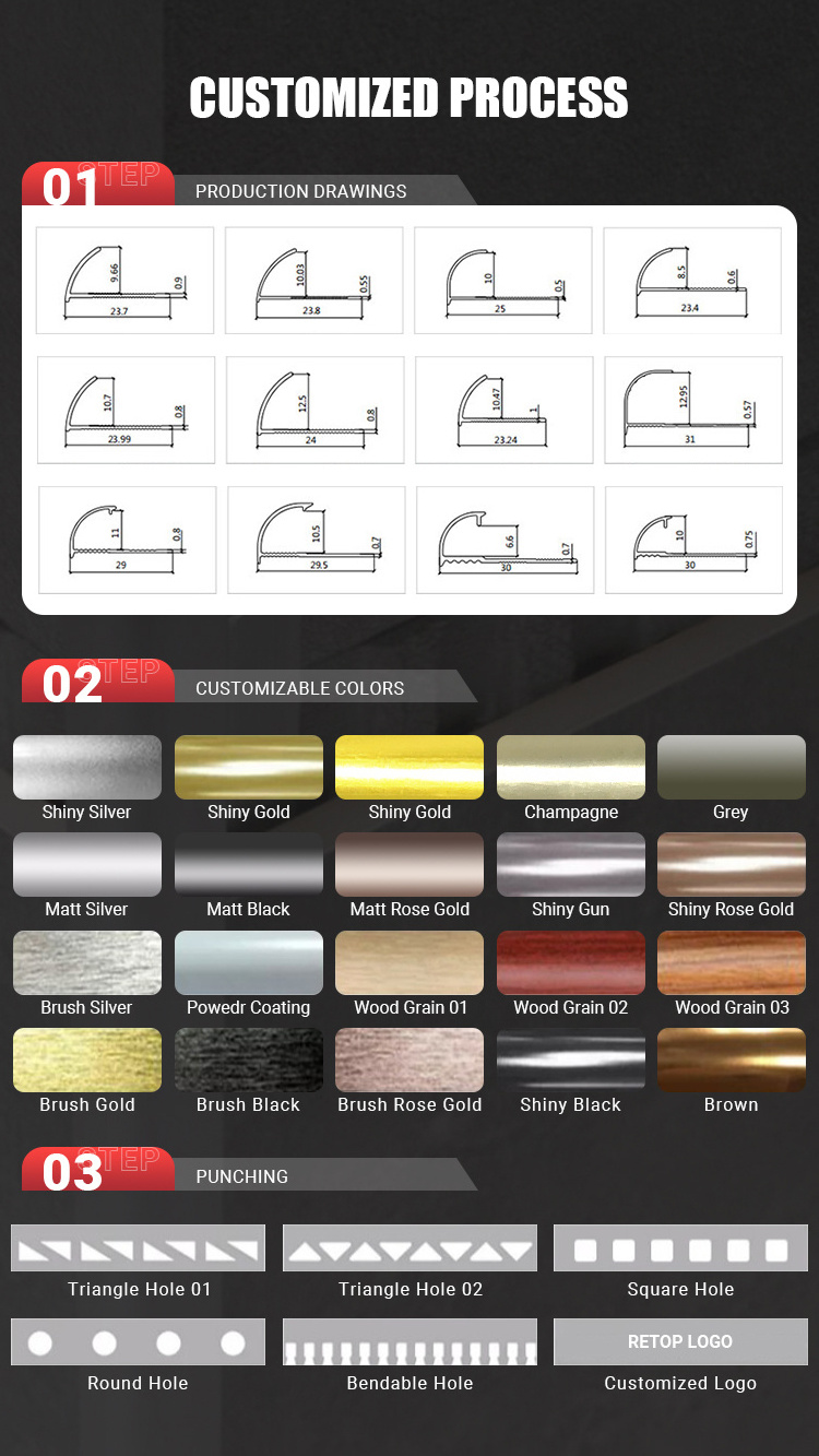 Henan Retop Industry Co., Ltd. is the leading manufacturer of aluminum profiles in China for the construction, decoration and industries fields. Since 2003 of our establishment in Zhengzhou City, we have supplied domestic and abroad market with high-quality products and best service for over 16 years. With 180,000 square meters occupation, we own 18 Extruding Lines from 500UST to 4000UST Extruder, 2 Horizontal and 1 Vertical Powder Coating Lines, 2 Anodizing Oxidation Lines, Deep-processing Workshop and CNC High-precision Processing Workshop to meet all the customer's demands.