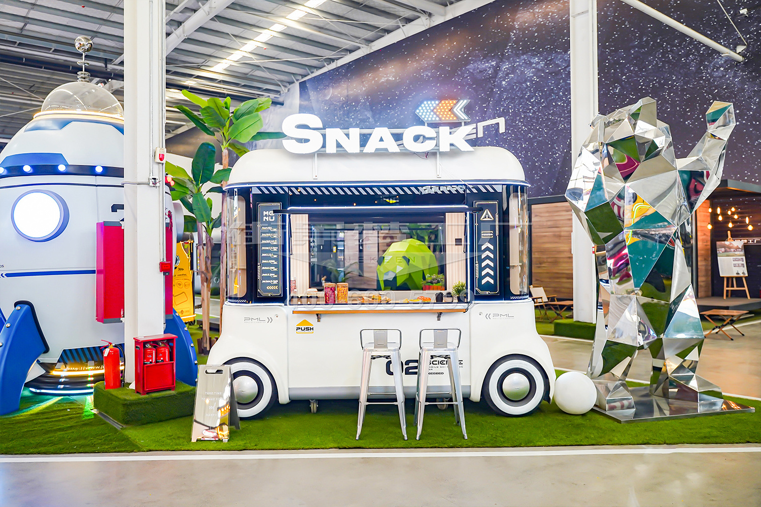 awning, Integral stainless steel cabinet, Multi-layer shelves, Freezer, Varied cooking equipment, Air conditioner, electric