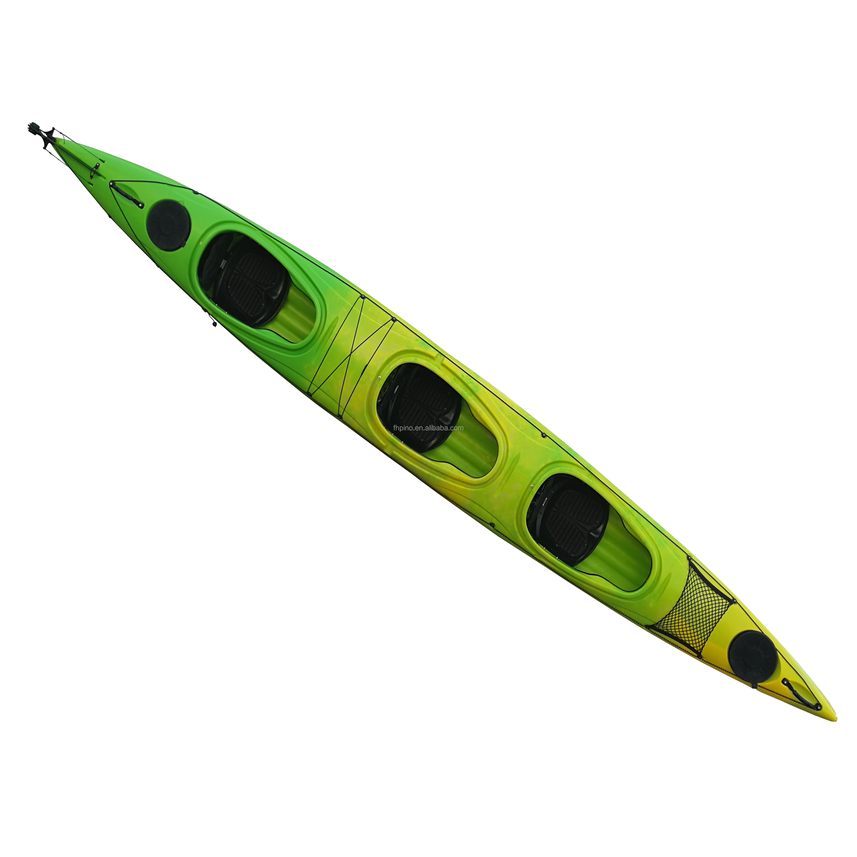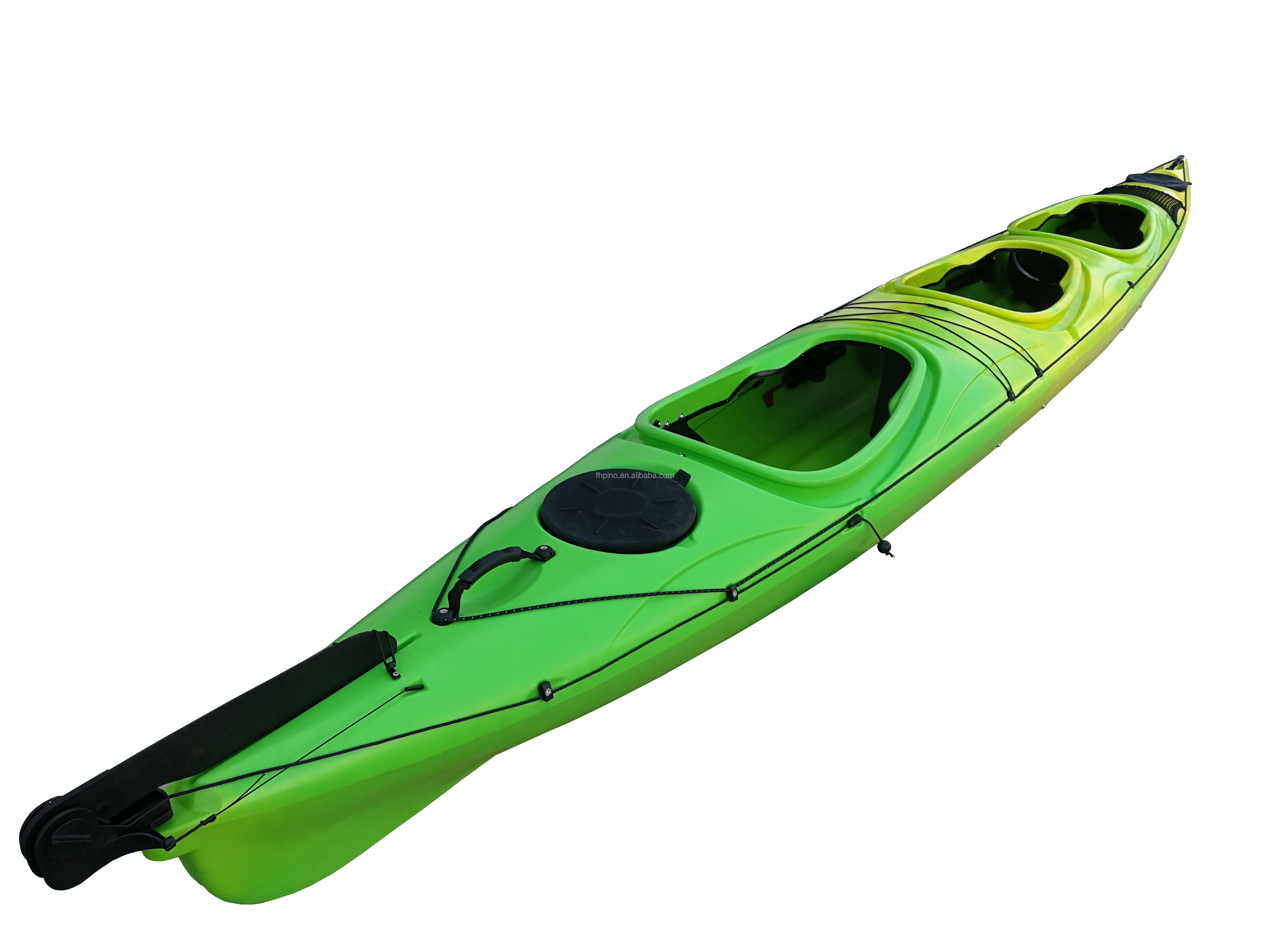 CX580B is an innovative triple kayak designed by our company. This is a performance oriented and also super suit for expedition kayak and it will be a great fun for three friends going out for paddling together. This kayak comes with only two round rubber hatches but still provide enough storage capacity for you. And with basic and simple deck equipment, though it is long and big but still it operates dexterously and fast.