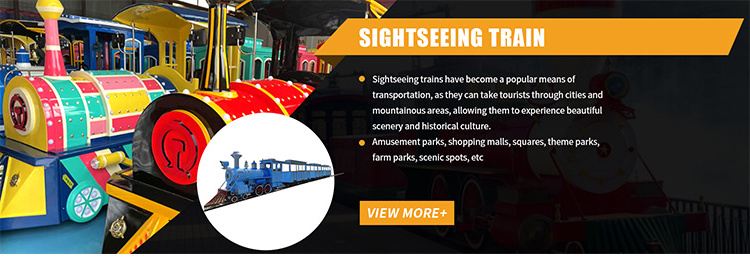 is consists of a locomotive and passenger carriages, can hold 14 to 40 children and adults in totally. In addition, trackless train also can be equipped with smoke steam spray device,real sound, half closed cabin/carriage,etc. Tourist trackless train can use battery power and diesel power, which depends on the condition of the road and environment. What's more, the trains can be made of wood material. Our company already research various of design for trackless train now. Welcome your order.