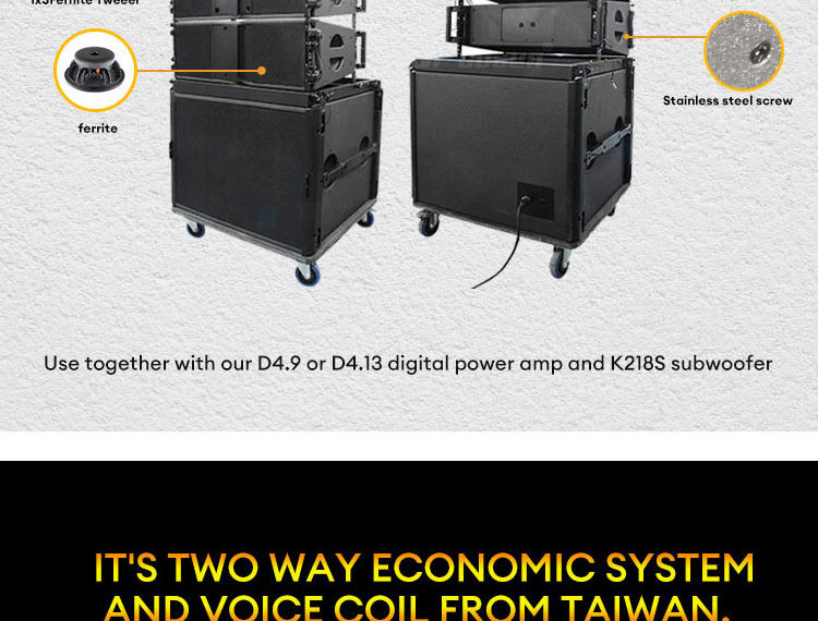 LF:2×10" (250mm)/ 3”(75mm)Voice-coil Neo/ferrite 8Ω