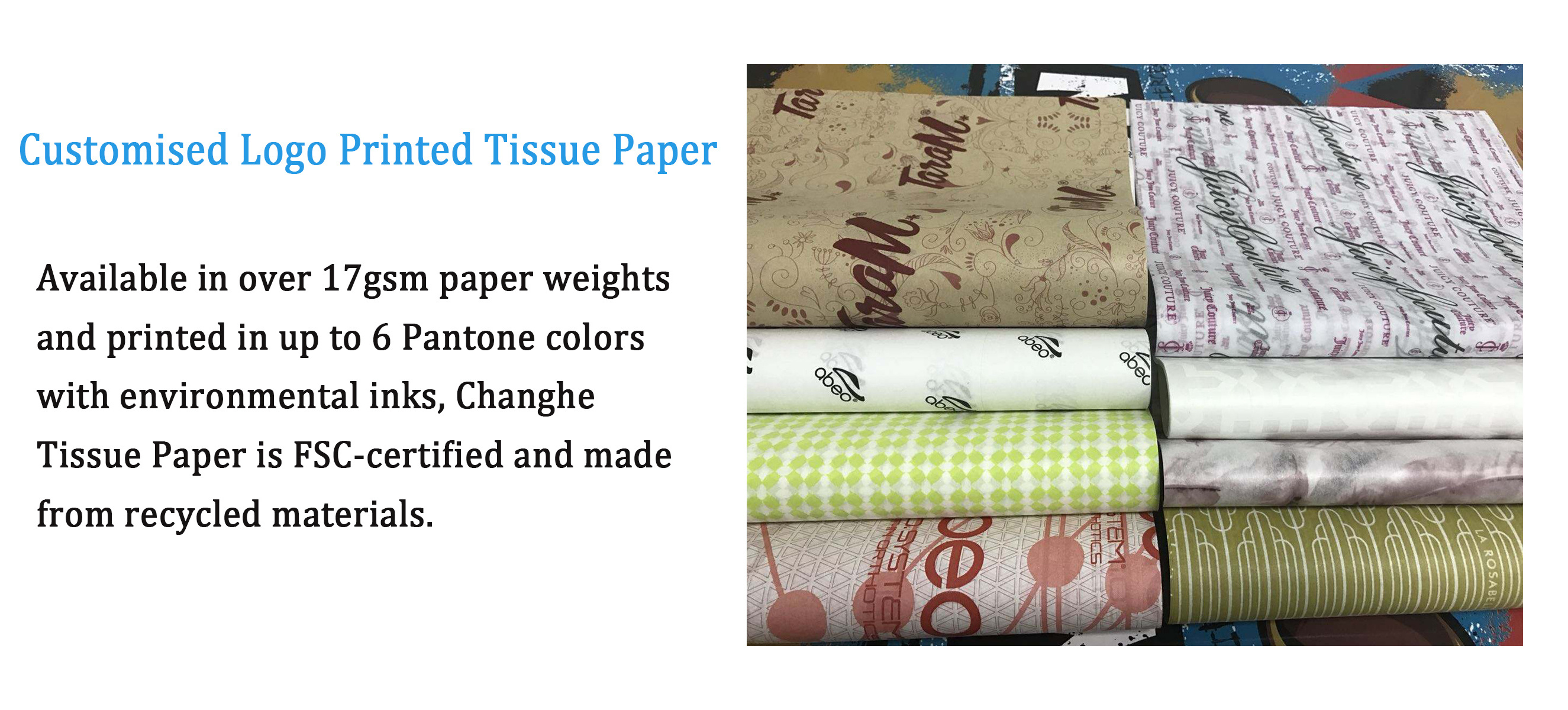 Changhe Paper has established on 2011, with more than 10 years of paper and paper printing experience. We are dedicated in light weight wrapping paper with superior quality and reasonable prices. Including different gsm of tissue wrapping paper with perfect printing quality. The majority of our main products delivered to Asia, Europe ,South America