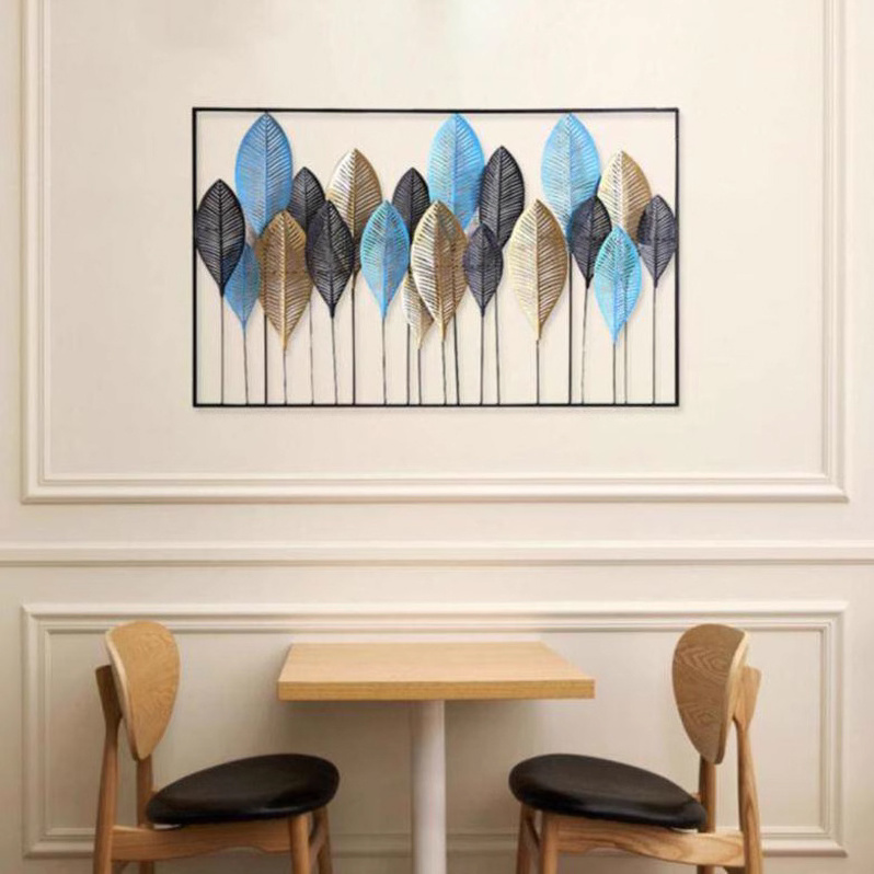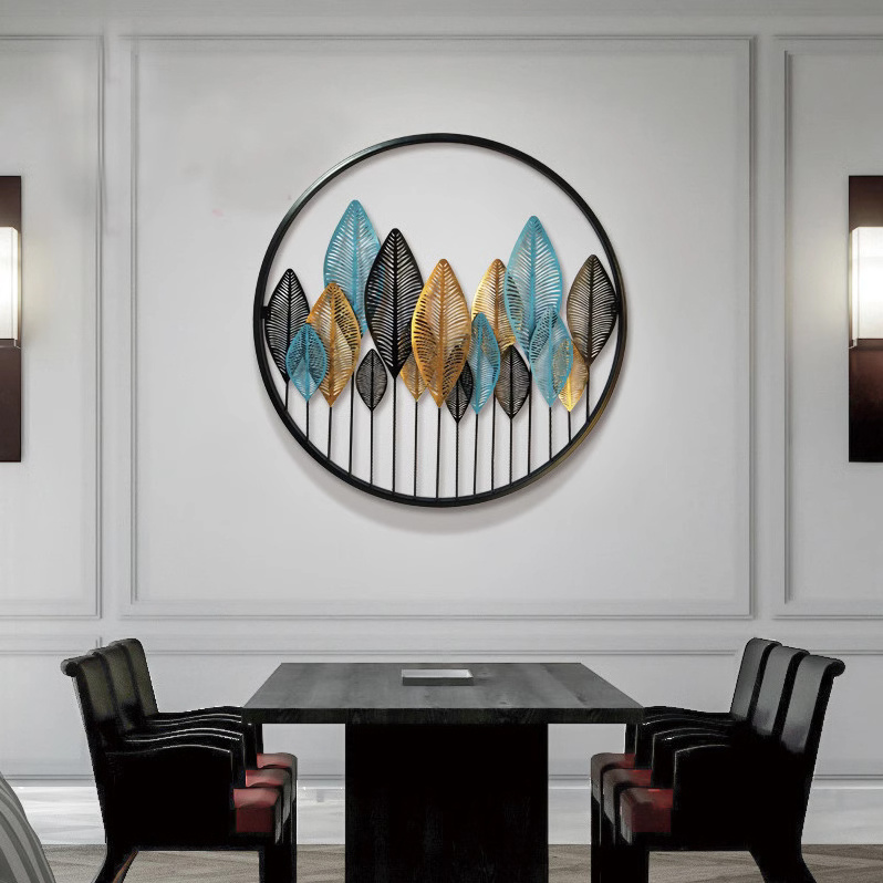 Modern Simple Iron Art Decoration Wall Hanging Living Room Sofa Background Metal Creative Crafts Circular Leaf Forest Art