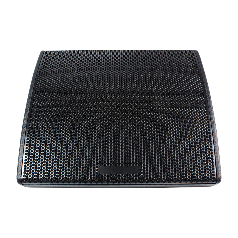 5. The front of the loudspeaker cabinet is protected by a rigid metal grill backed with an acoustically transparent foam.