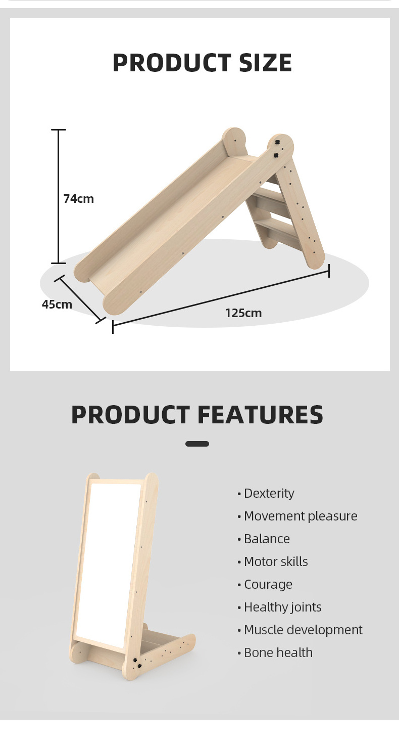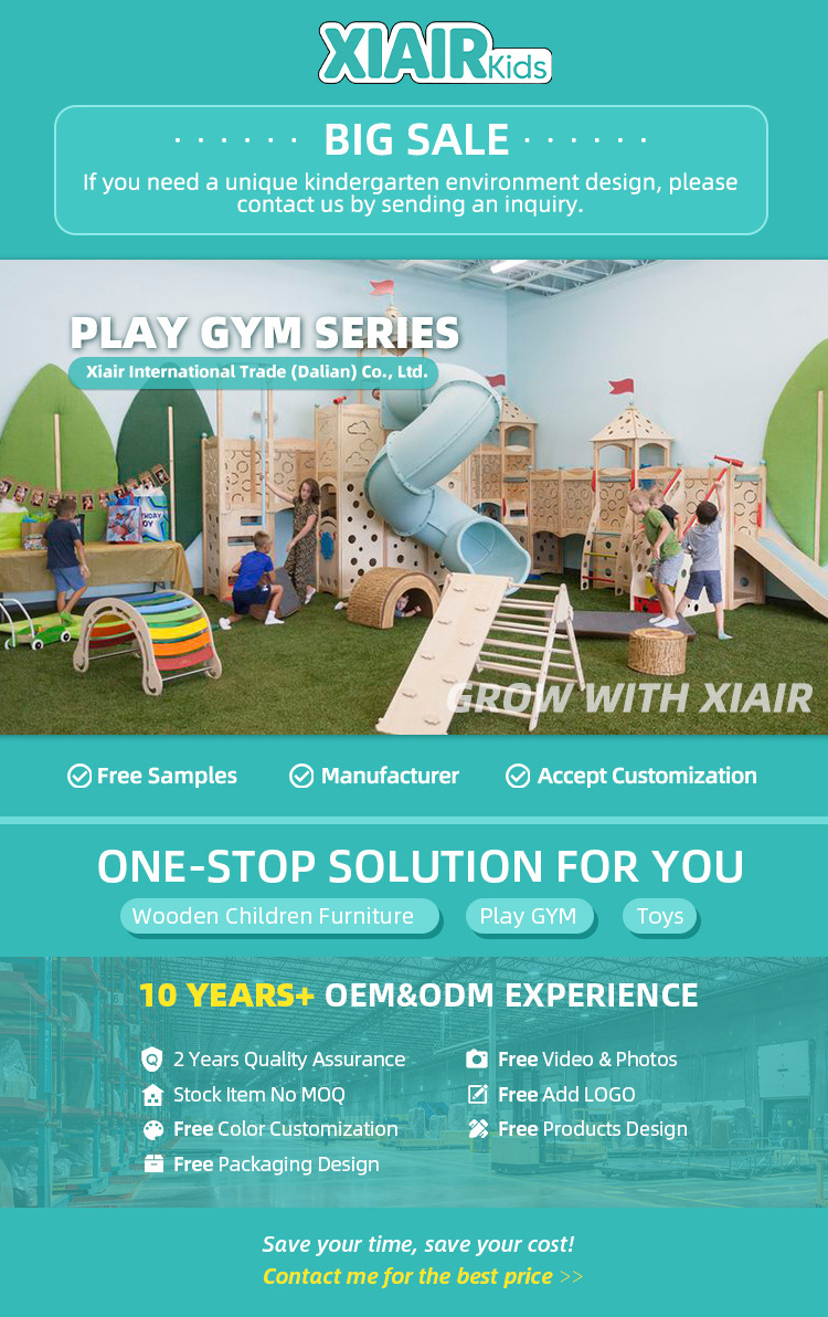 Xiair Montessori Playroom Furniture Toddler Indoor Playground Eco-Friendly Wooden Slide for Living Room With Climbing Ladder