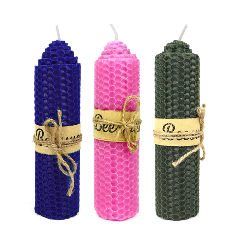 Wholesale hand rolled beeswax colorful scented natural beeswax pillar candles