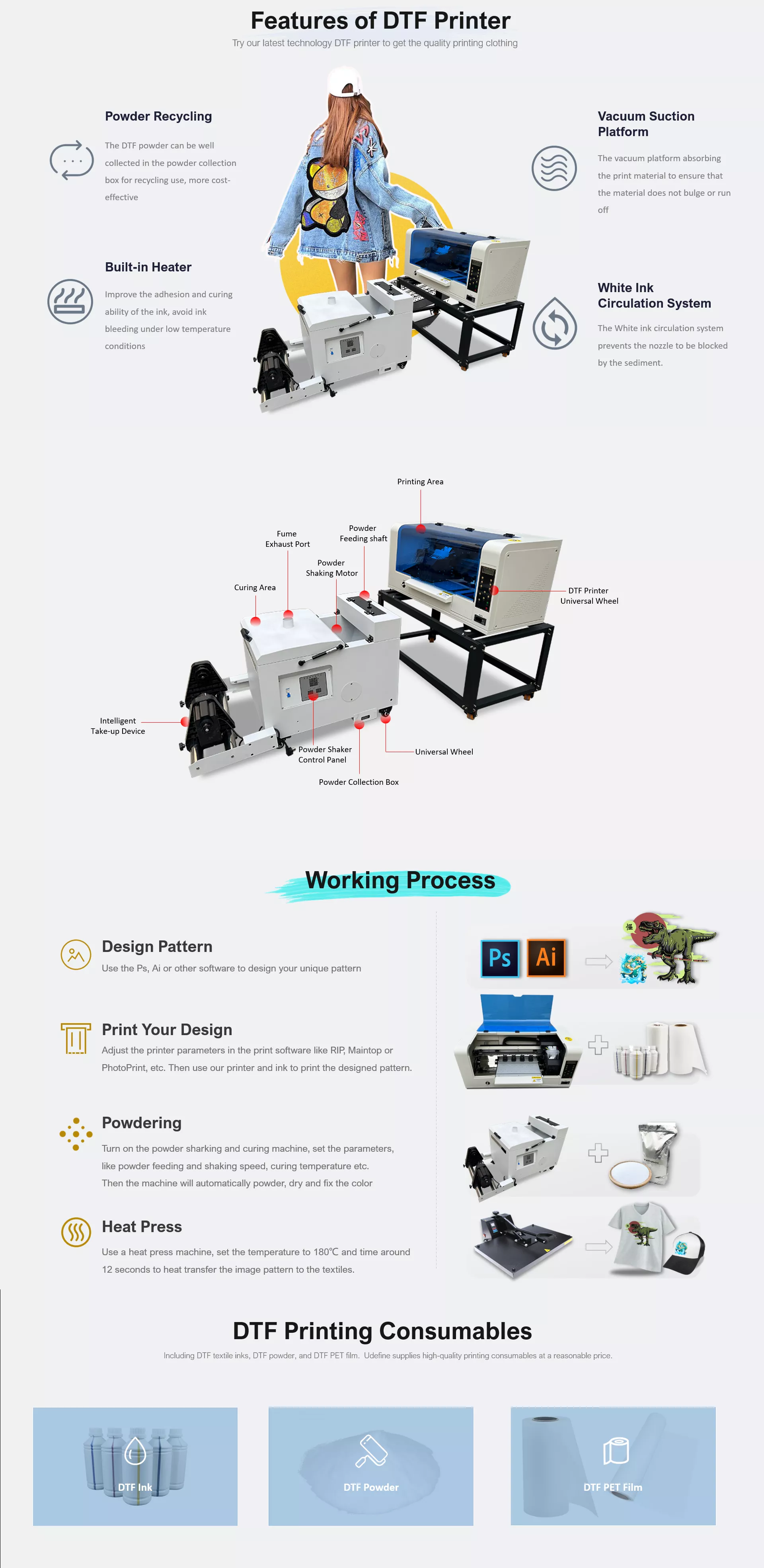 DTF Printer, Multifunctional Inkjet Printers, Multi Color Inkjet Printers, Semi-automatic Dtf Printers, printing shops, garment shops, home use