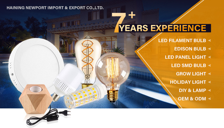 Haining Newport Import & Export Co., Ltd. is a comprehensive manufacturer and trade company established in 2016 in China. We have our own factories here in lighting products(vintage edison bulb, led filament bulb,indicator bulb,plant grow light, DIY lighting accessories,DIY lamps etc.) and customize metal products(metal stamping and CNC turning part and machinery products).Besides various products manufactured by our factory, we also have a number of affiliated companies that provide us with items to be marketed overseas. Our company has independent import and export rights. mainly offers one stop solution service in vintage and industrial style decoration and indoor gardening and hydroponic system. Our products are mainly exported to North America, Europe. Making your idea and design come true are our obligation.