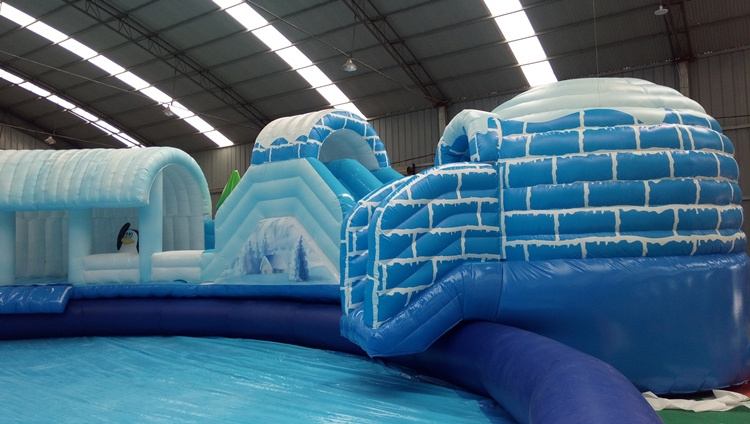 Process of Commercial Inflatable Games Bear Theme Inflatable Water Park With Water Slide Swimming Pool pool Accessories