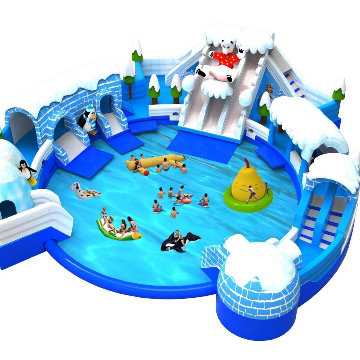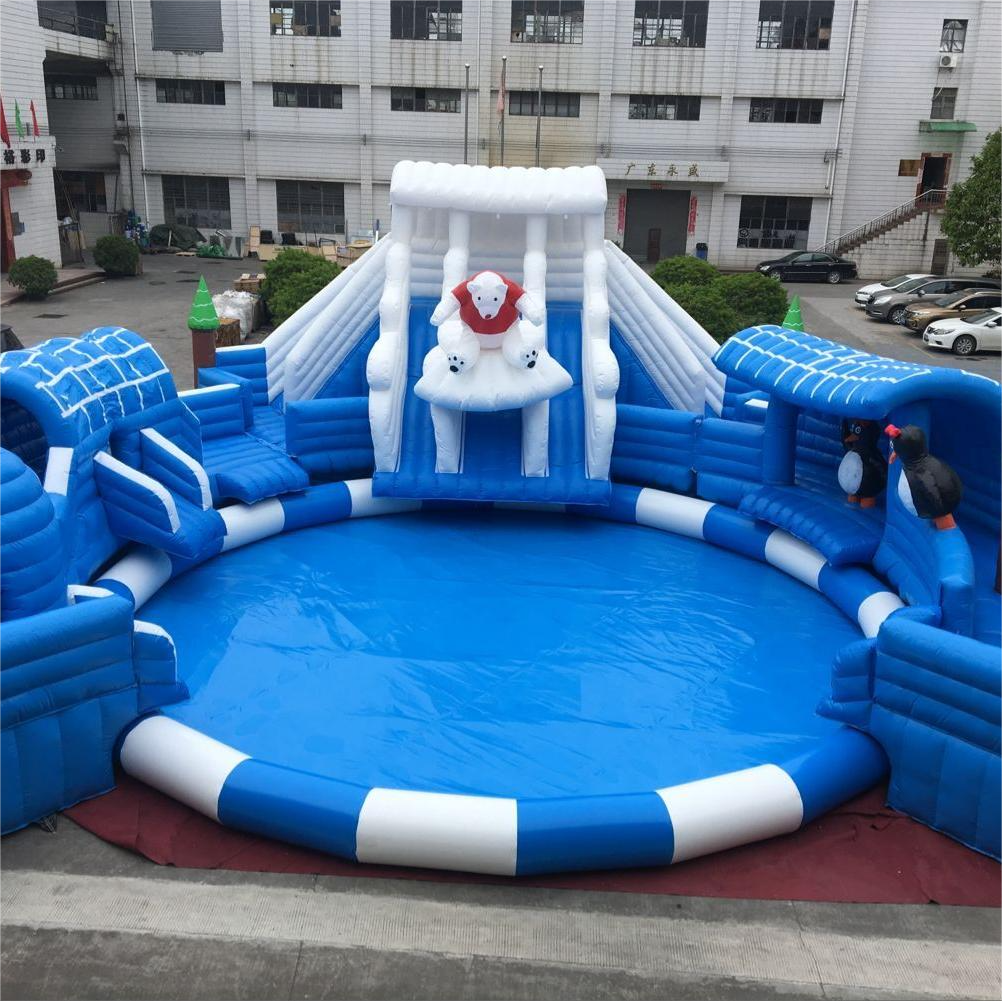 Commercial Inflatable Games Bear Theme Inflatable Water Park With Water Slide Swimming Pool pool Accessories