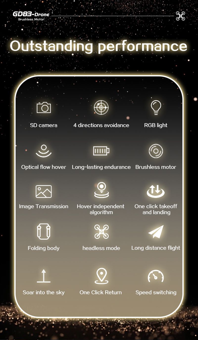 | Functions | Four-sided obstacle avoidance, foldable quadcopter, optical flow hovering, rise/fall, turn left/right, forward/backward, left and right side flight, 3D tumbling, tumbling conversion, headless mode, WiFi camera recording/photography/dual camera/ |