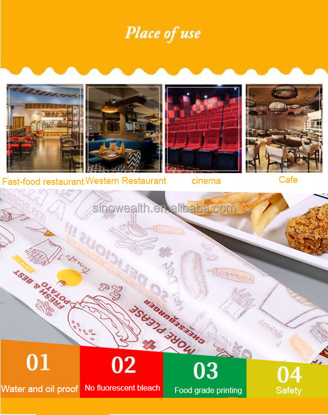 Food wrapping, Hamburg paper,Pizza paper, Bread paper, Food paper ......