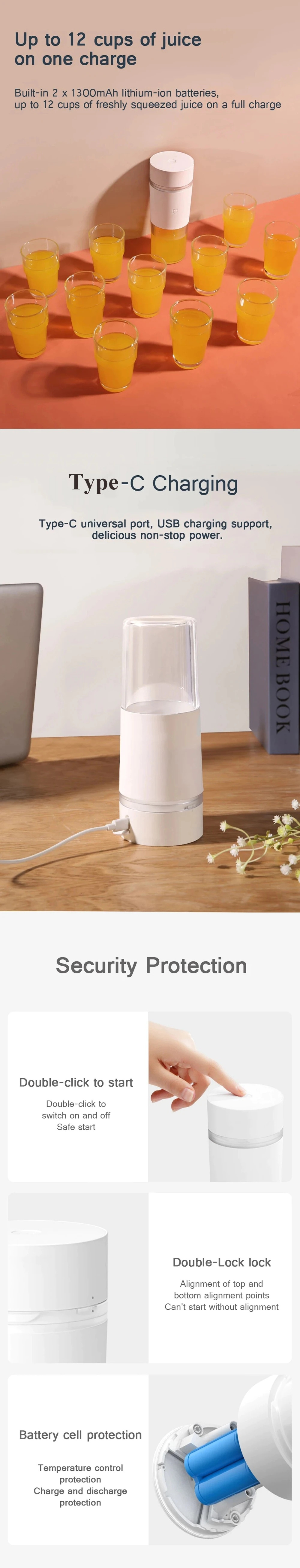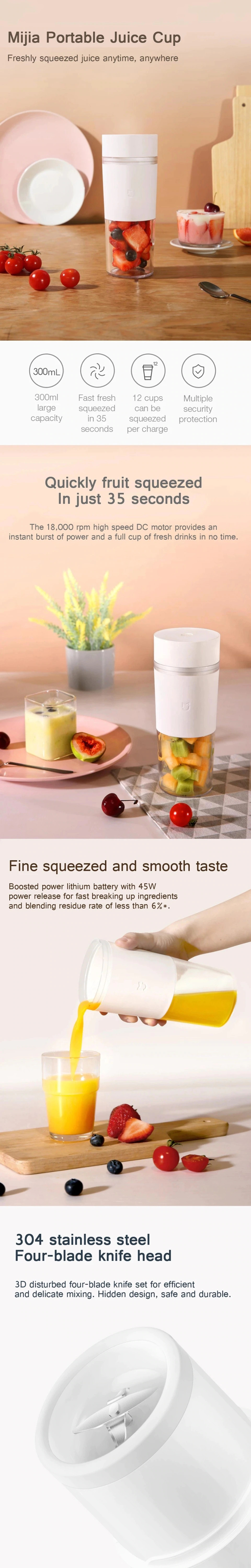Xiaomi Portable Juicer Cup 300ML Mini Juice Blender Fruit Food Processor Electric Kitchen Mixer Quick Juicing
