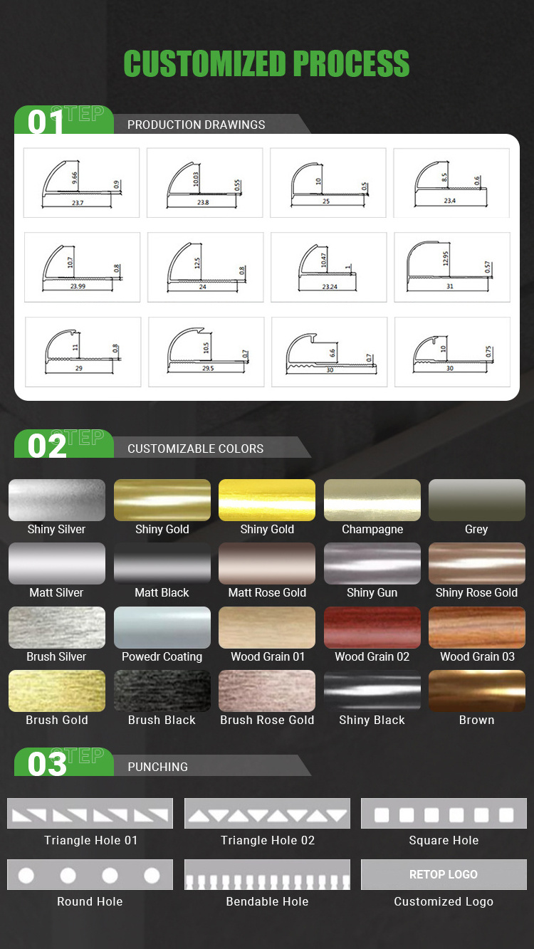 3. Height: 7/ 8/ 8.3 /8.5 mm or customized 4. Colour: Silver/ Gold/ Black/ Wood Grain/ Champagne or customized 5. Type: According to Your Market or Recommend |