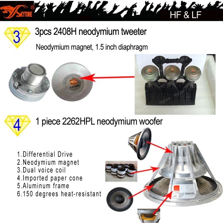 LF: 2262HPL; HF: 3x 2408H (1.5 in voice coil)