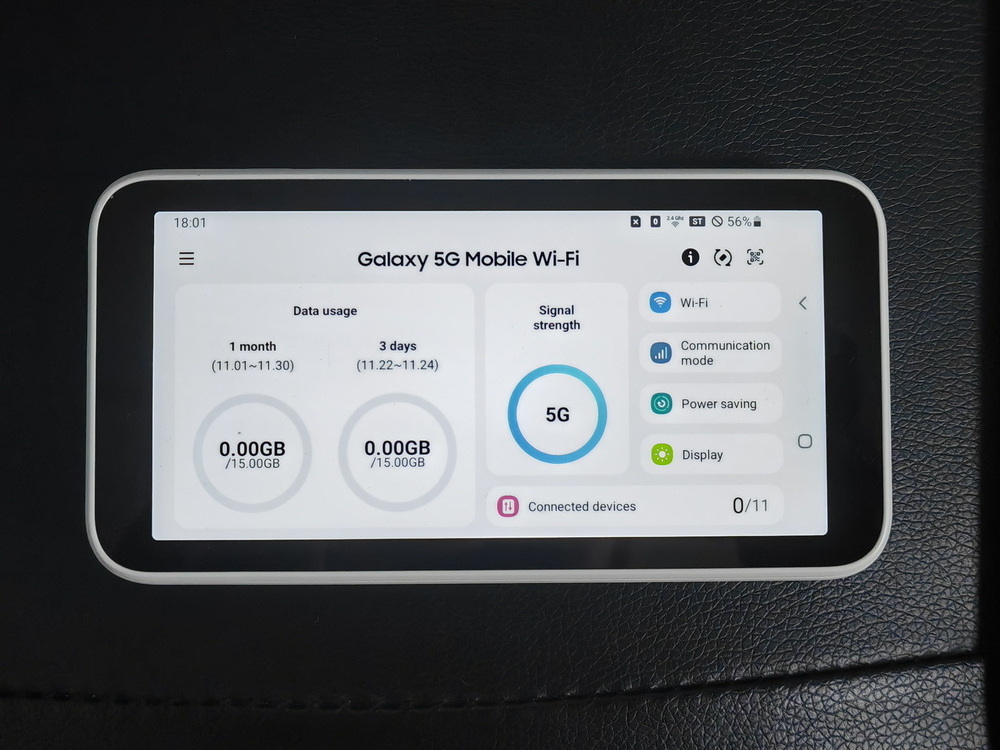 The first 5G compatible mobile router under the Glaxy brandlts compact size allows you to carry it in your bagr pocket.Equipped with a large capacity battery of 5,000mAh, you canGenjoy 5G communication such as streaming, game,anddownloads not only at home