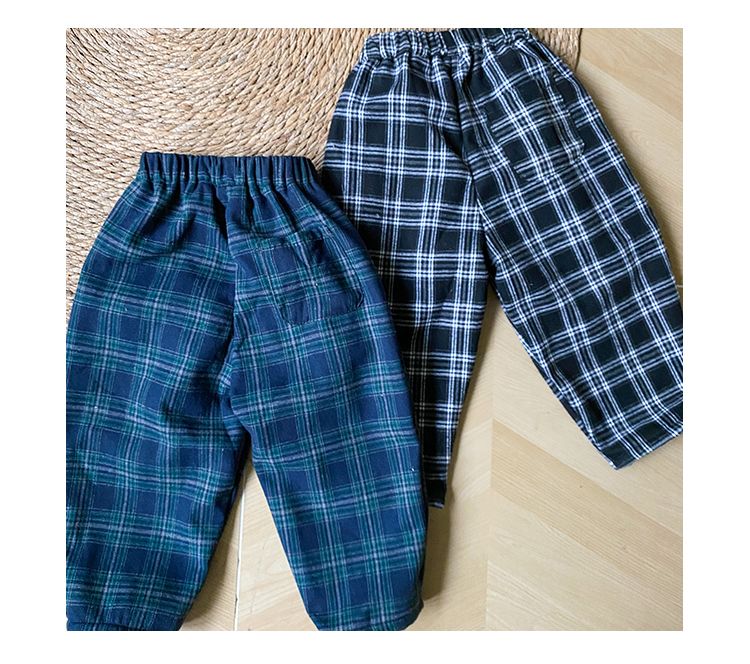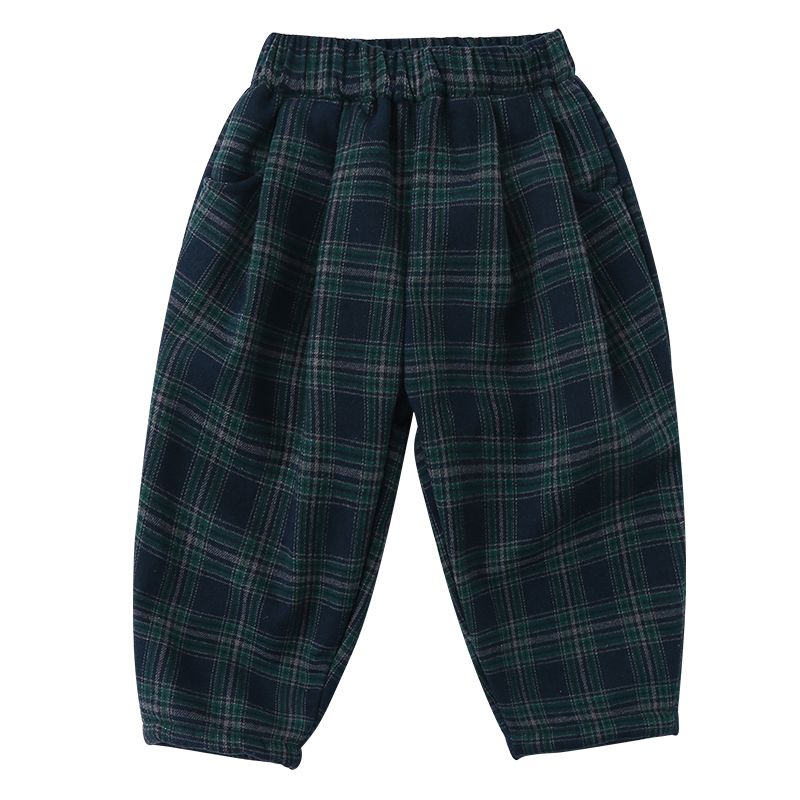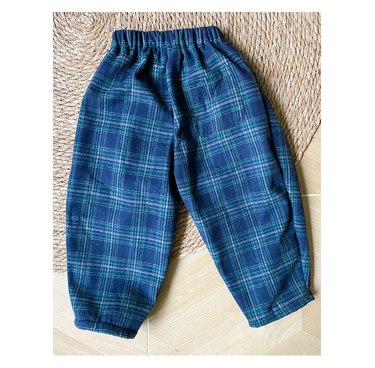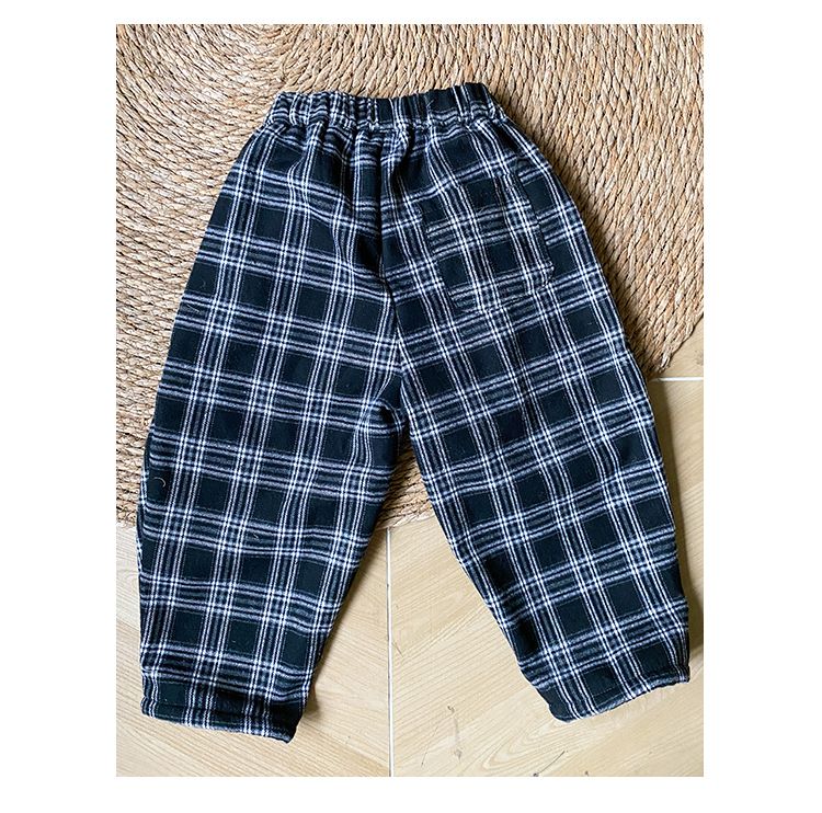 Children's one-piece velvet pants for men's and children's clothing new autumn and winter, girls' thick checkered casual pants