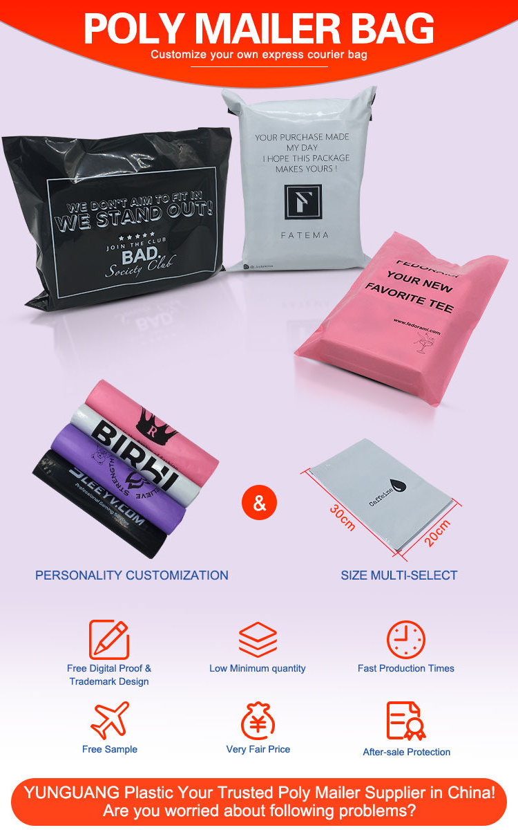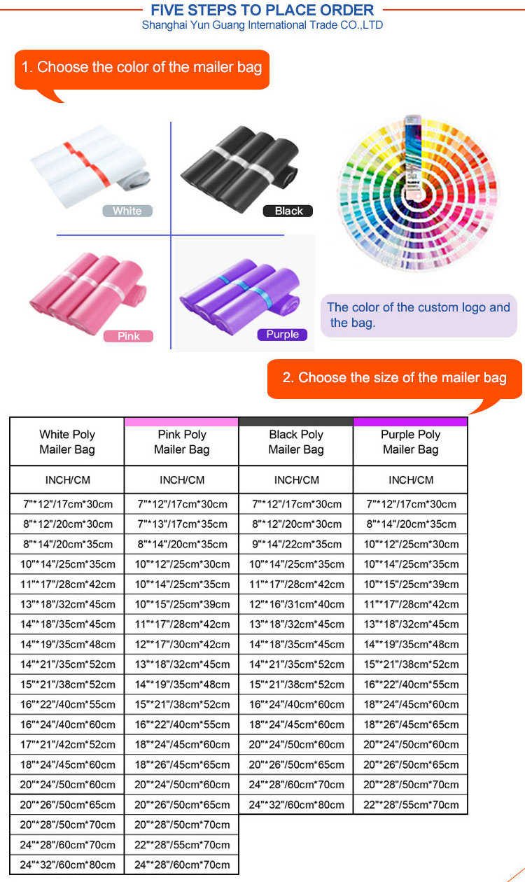 custom size Shipping poly mailers with full color logo OEM Printed white courier mailing bag