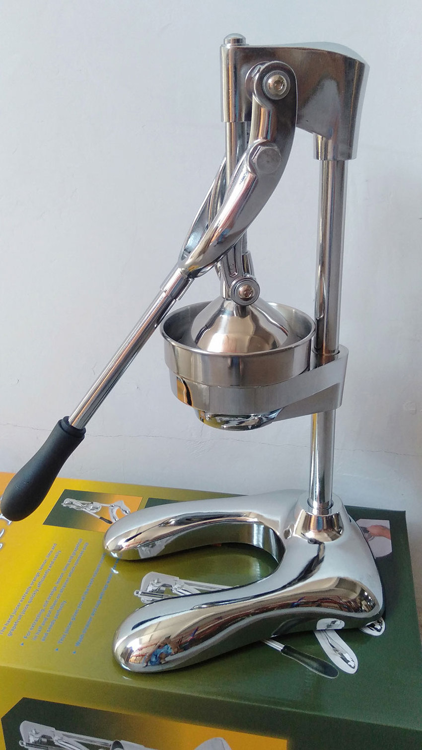 1.This machine is the manual model for pressing orange juice, made of stainless steel.