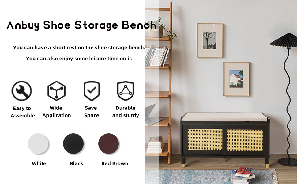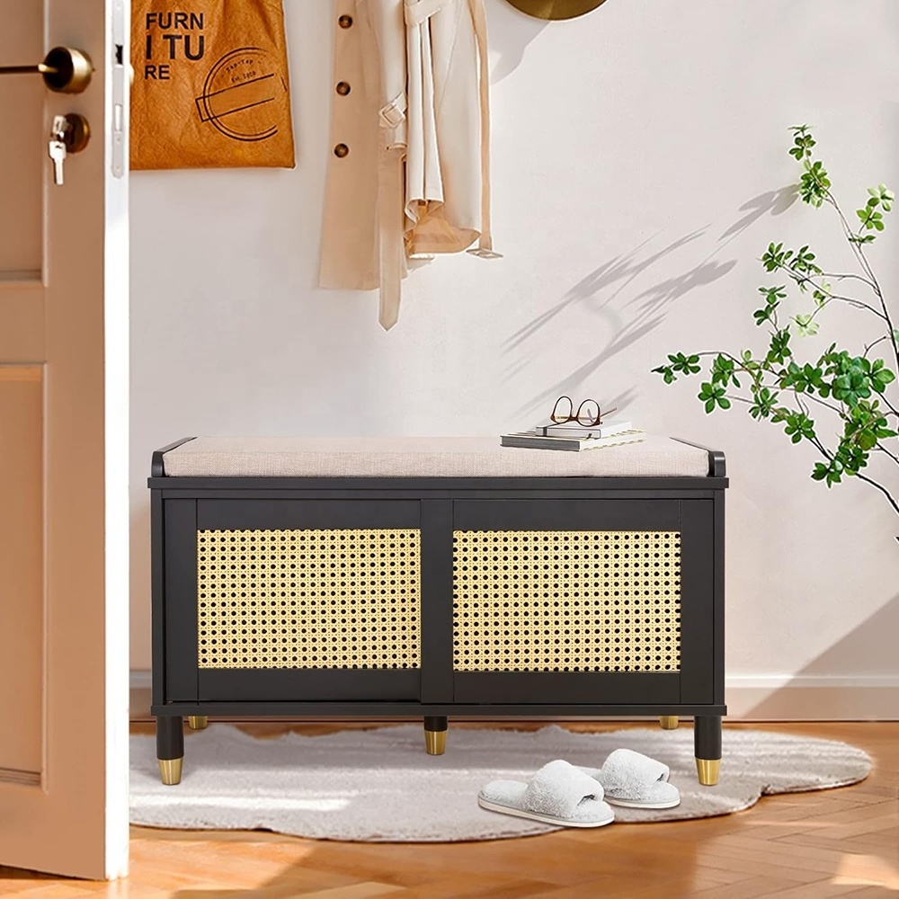 * Welcomes Home!-The natural rattan design, soft cushion and elegant metal wrapped legs form a beautiful Shoe Storage Bench.As soon as you open the door, you can see such a beautiful shoe rack bench. You can't wait to sit down and enjoy a quiet and comfortable time
