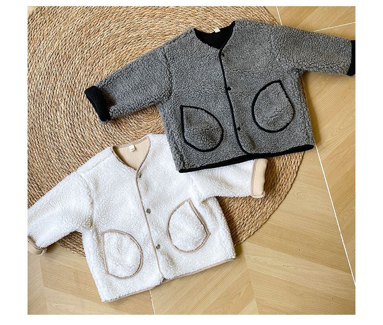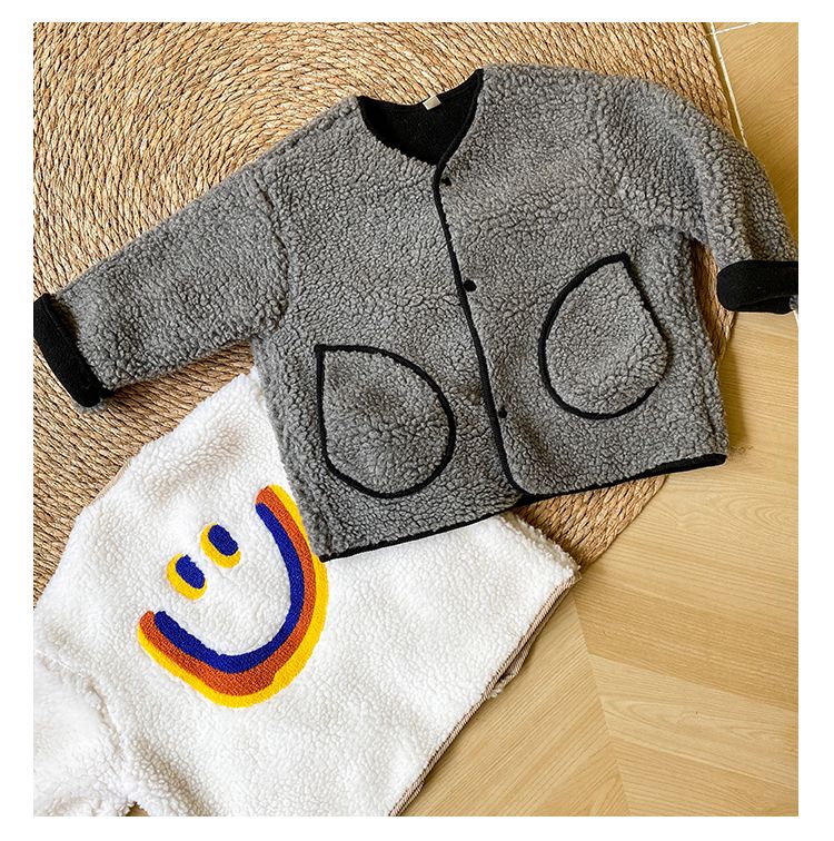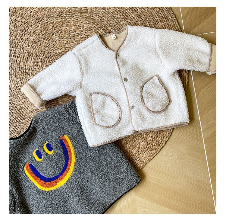 Children's lamb wool jacket with thick wool for boys and girls, big smiling face 2024 new autumn and winter clothes baby fur top