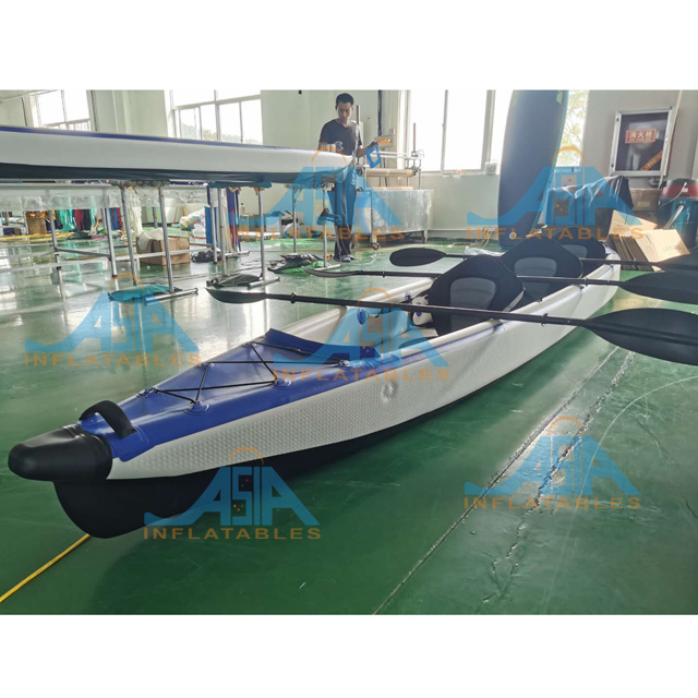 Stock 2 person factory customized fishing canoe rowing boat pedal Drop Stitch Inflatable Kayak with drain hol
