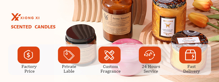 XIONGXI specializes in the development, production, sales and service of various scented candles. With more than 10 years of production experience in the aromatherapy industry, we provide aromatherapy candle crafts solutions for our customers. Strict quality control ensures that our products have a good sense of smell and longevity in terms of aroma quality, and our products are sold in dozens of countries and regions in North America and Europe, such as Canada, USA, France, UK, Germany, Italy, Japan, etc. At the same time, we have our own 6 aromatherapy production lines, 6 sets of experimental testing equipment, which can do candle cup temperature test, wax melting point test, color control test, external packaging design, all kinds of aromatherapy processing workshop, with complete equipment and professional technology, to ensure the standardization of product production with maximum efforts, daily production capacity of 30,000 pieces / day, as far as possible to provide you with quality products and services.