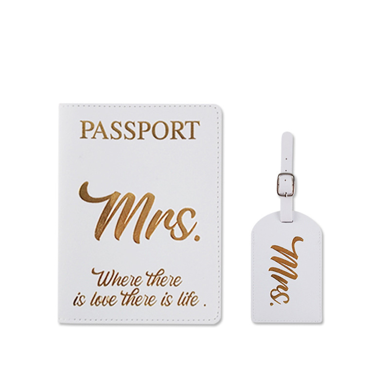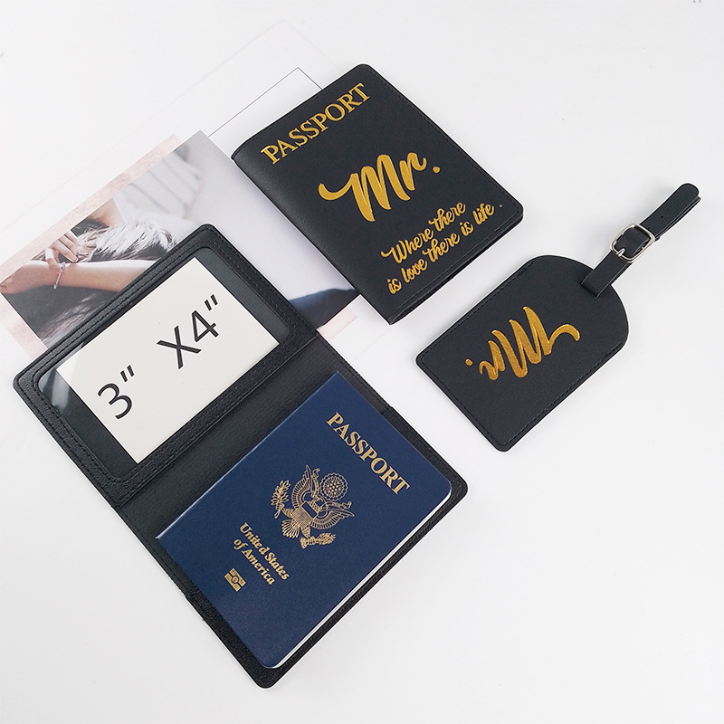2023 Cheaper Mr and Mrs Luggage Tags Passport Holder Cover Set with Gold Stamping Logo