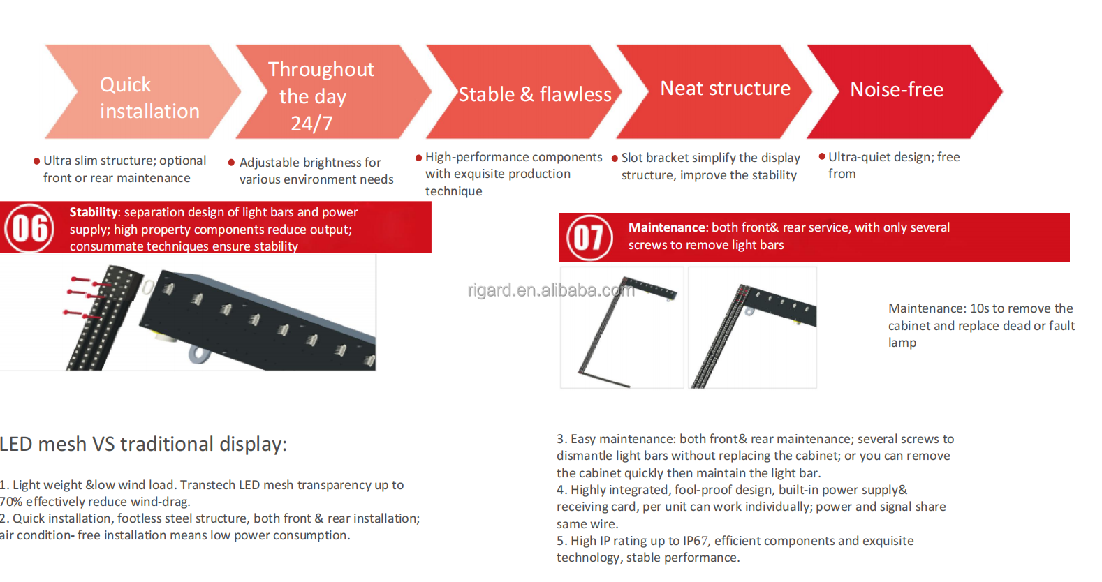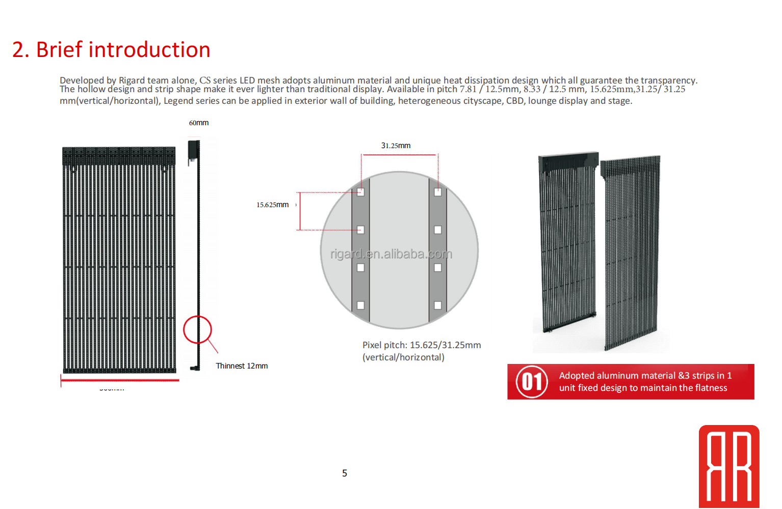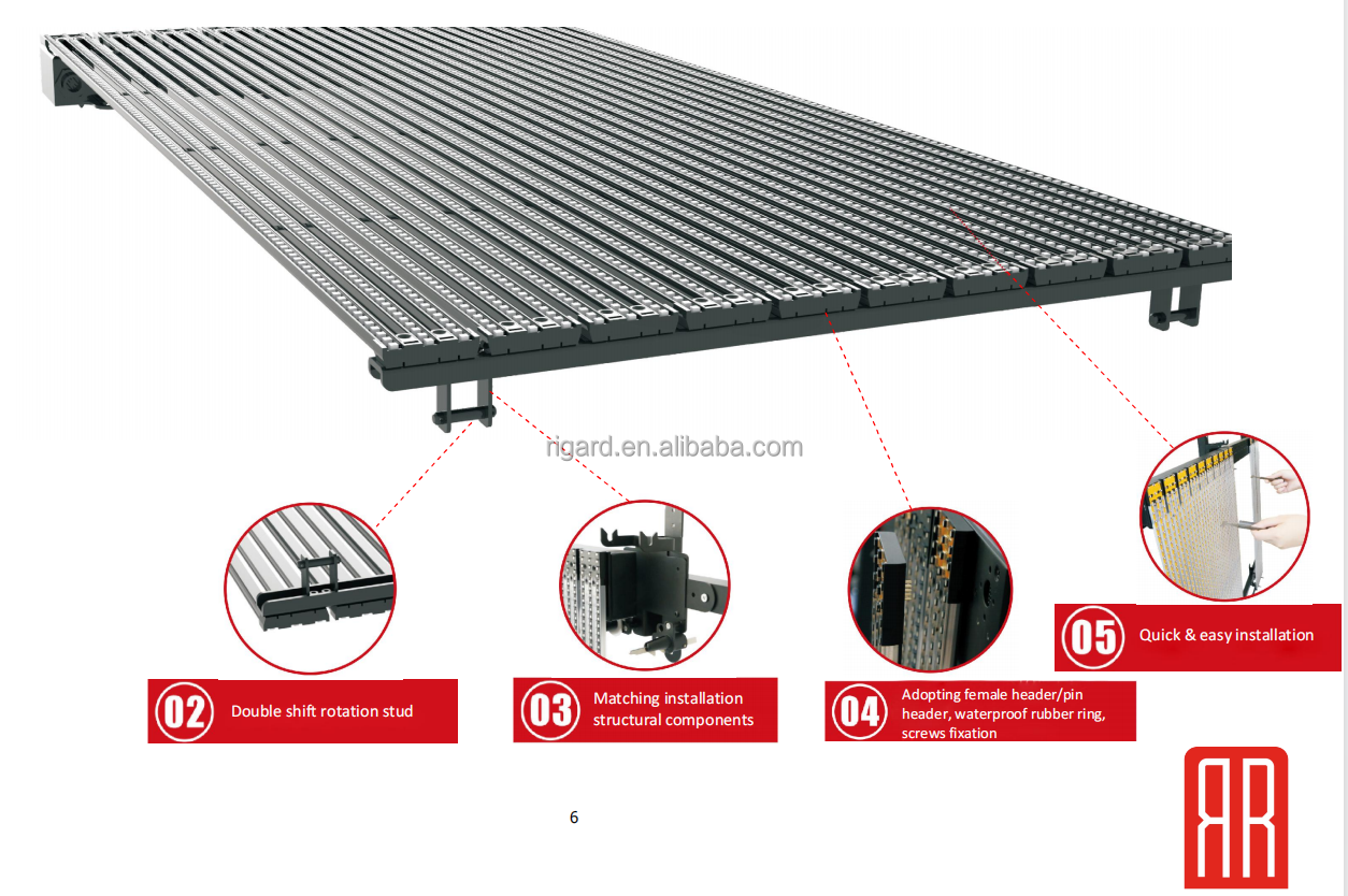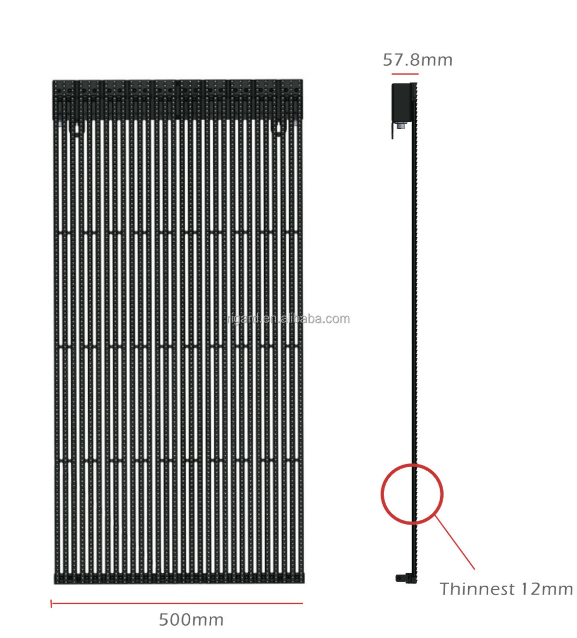 The hollow design and strip shape make it ever lighter than traditional display. Available in pitch 7.81 / 12.5mm, 8.33 / 12.5 mm,
