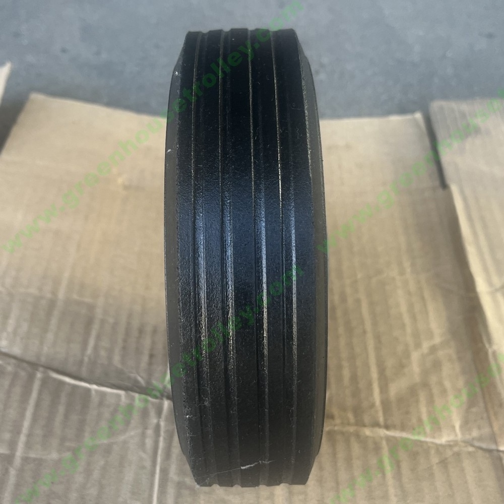 * Hand truck wheel with solid rubber tire and plastic hub for use on smooth surfaces and most flooring types