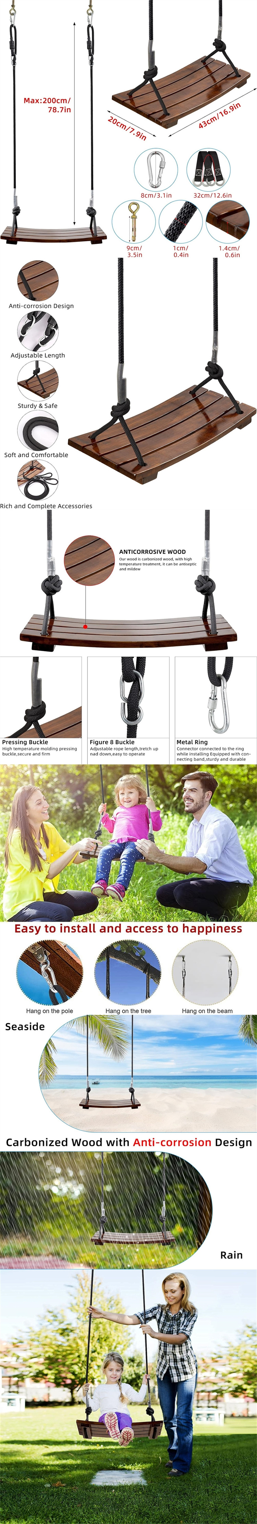 Backyard Play Adult Kids Children Swing Seat Anticorrosive Waterproof Carbonized Hanging Wooden Tree Swing Set