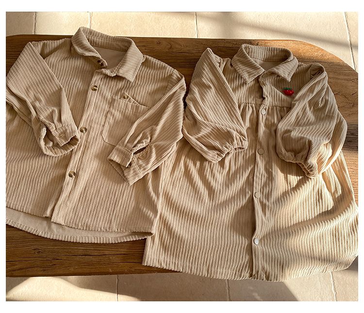 Girls' corduroy dress, children's siblings' autumn clothing, 2024 new style for spring and autumn, baby's stylish boy's coat