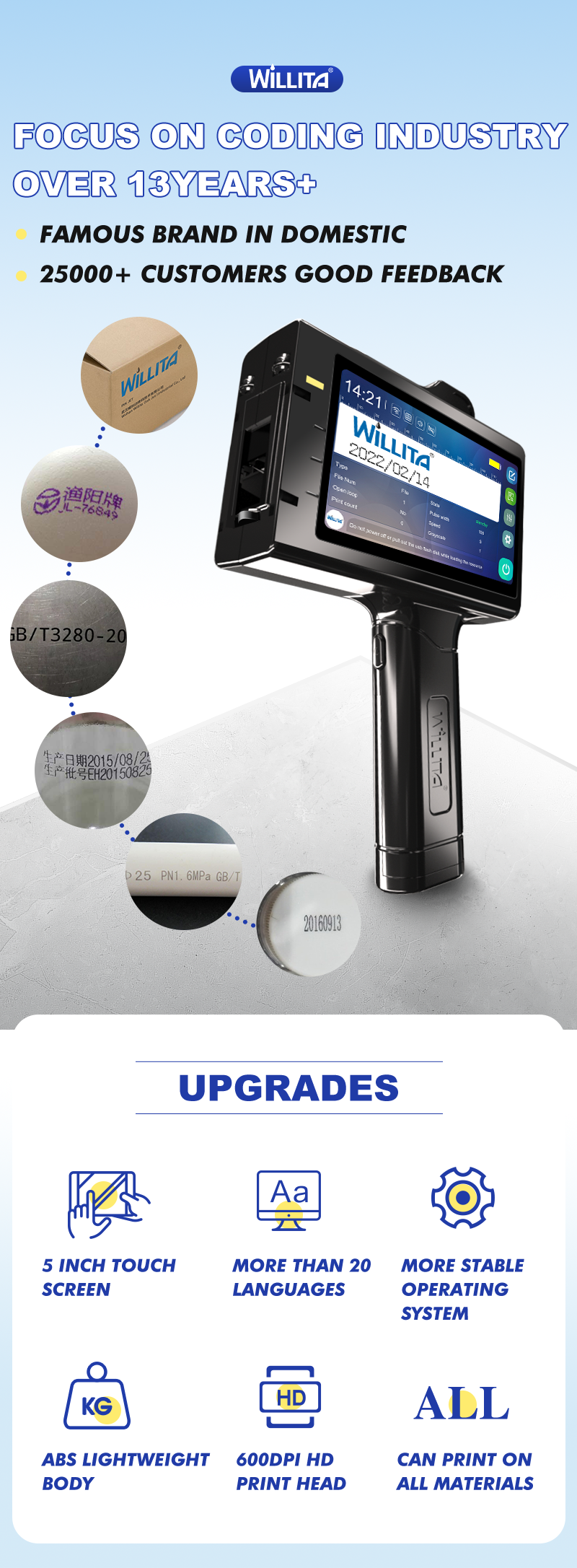 Batch Code Portable Handheld Inkjet Printing Machine for Fast Dry Batch Coder Egg Date Expiry Number Date