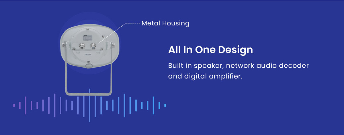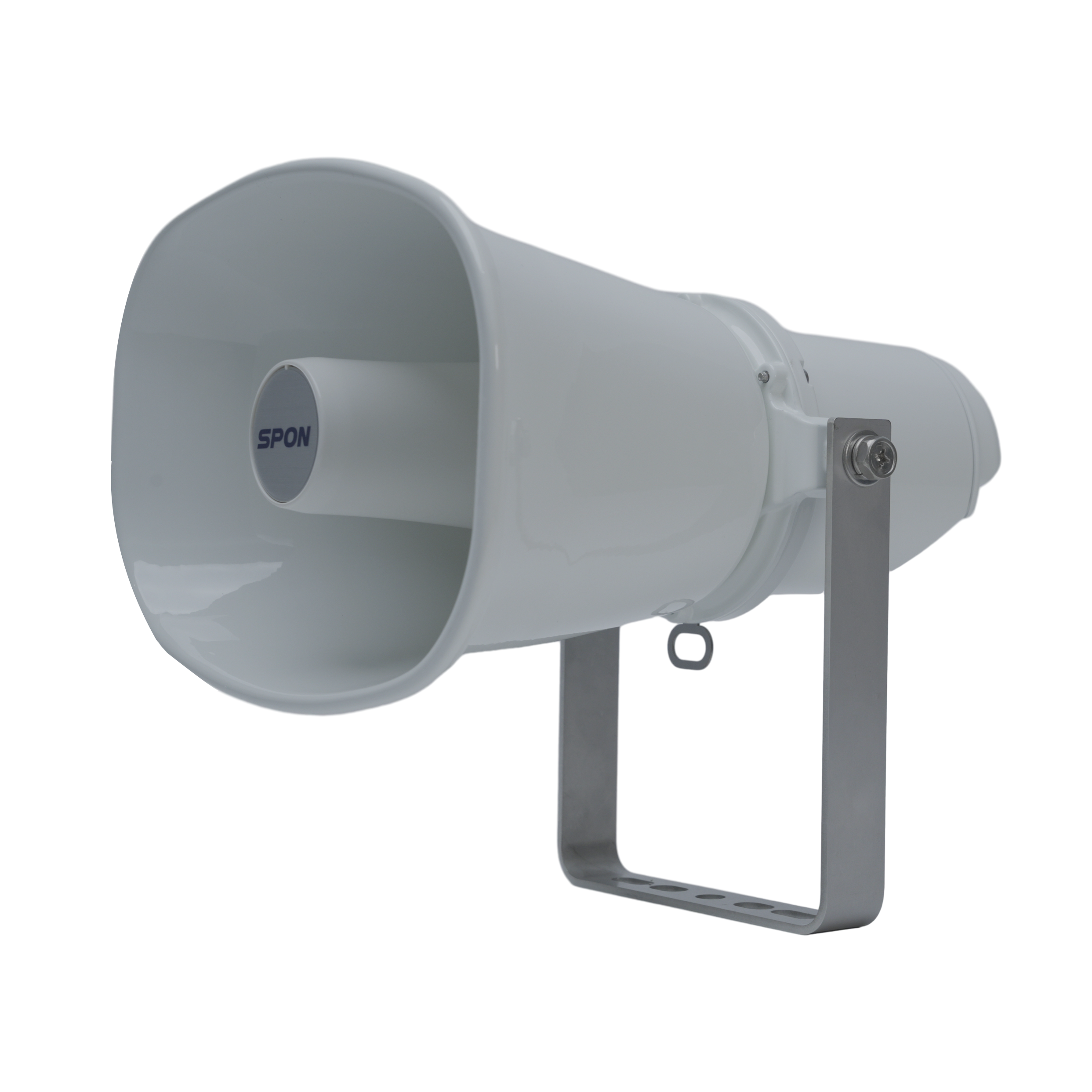 The SPON GEN-6392A01 IP PoE Horn Speaker is a SIP-compliant, multicast-capable IP Speaker suited for voice paging, loud ringing, and alert/notification solutions, especially in wide areas and high-noise places such as warehouses, manufacturing areas, and outdoor areas.