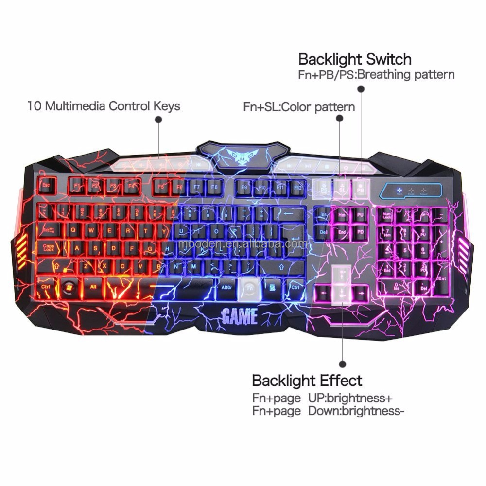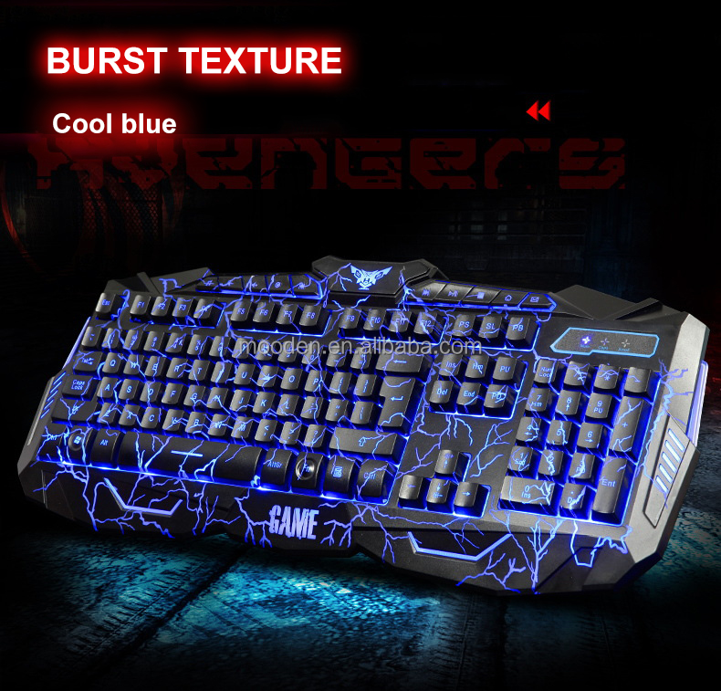 V100 English crack mouse keyboard set Seven -colours backlight game mouse three colour backlight keyboard Wired Mechanical Keyboard Aluminum 104 Keys