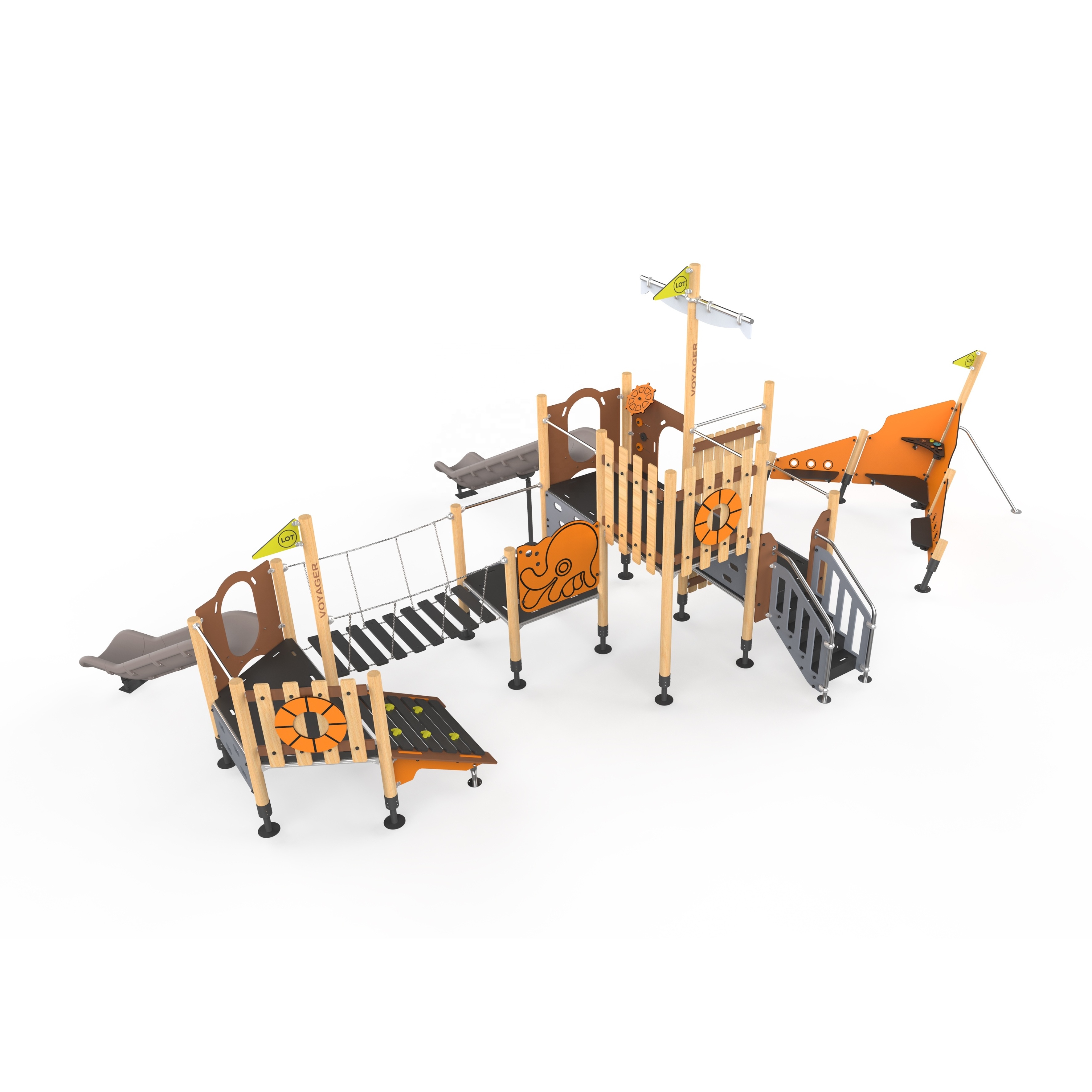 18mm hick HPL outdoor board, Aviation grade cast aluminum alloy connectors (self-developed molds) 304 stainless steel accessories, Double layer rolling plastic slide, LLDPE material (self-developed mold) Q235 steel structure, surface sprayed with powder and baked paint |