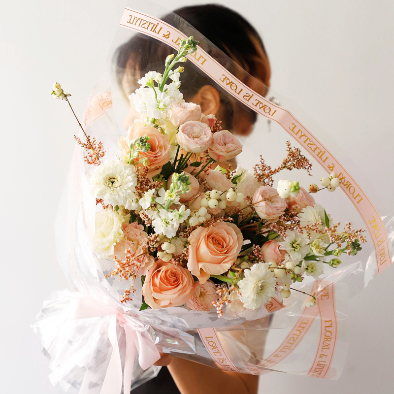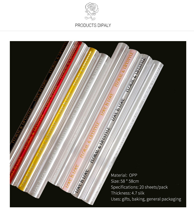 Wholesale Glossy Surface Golden Factory New Frame Translucent Waterproof Flower Rimmed Wrapping Paper